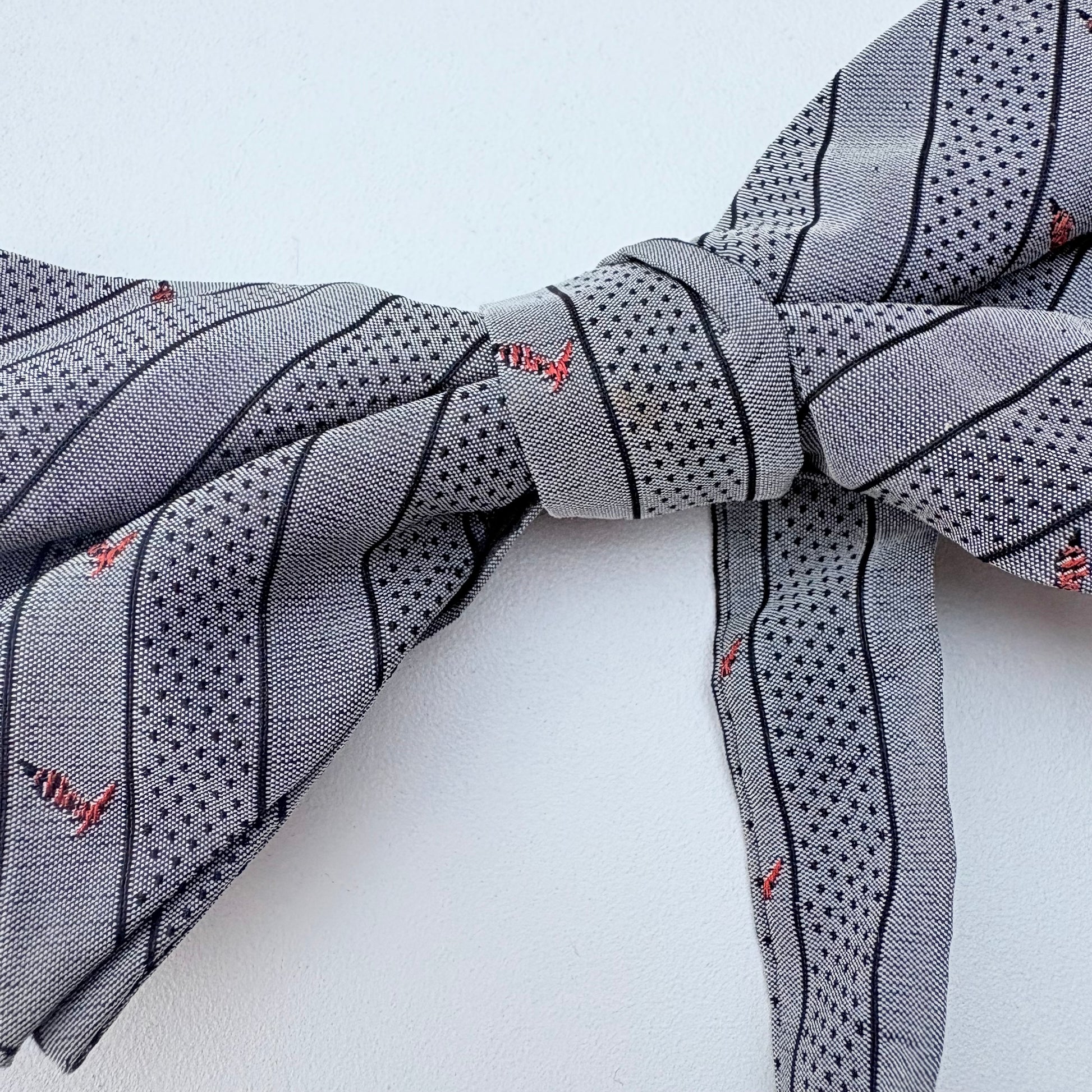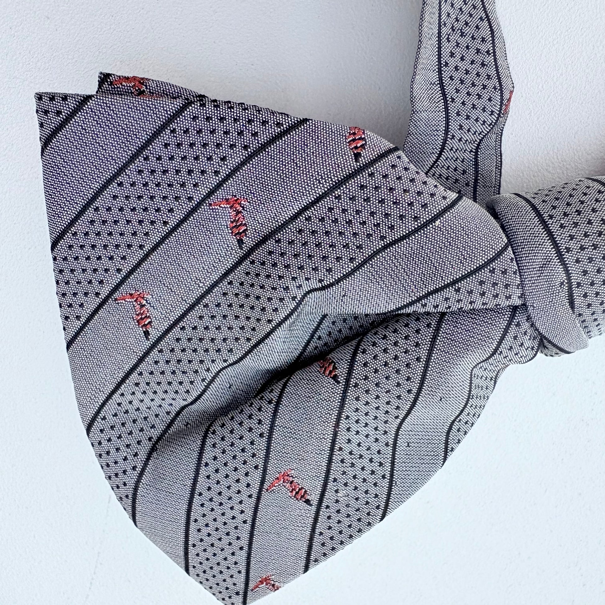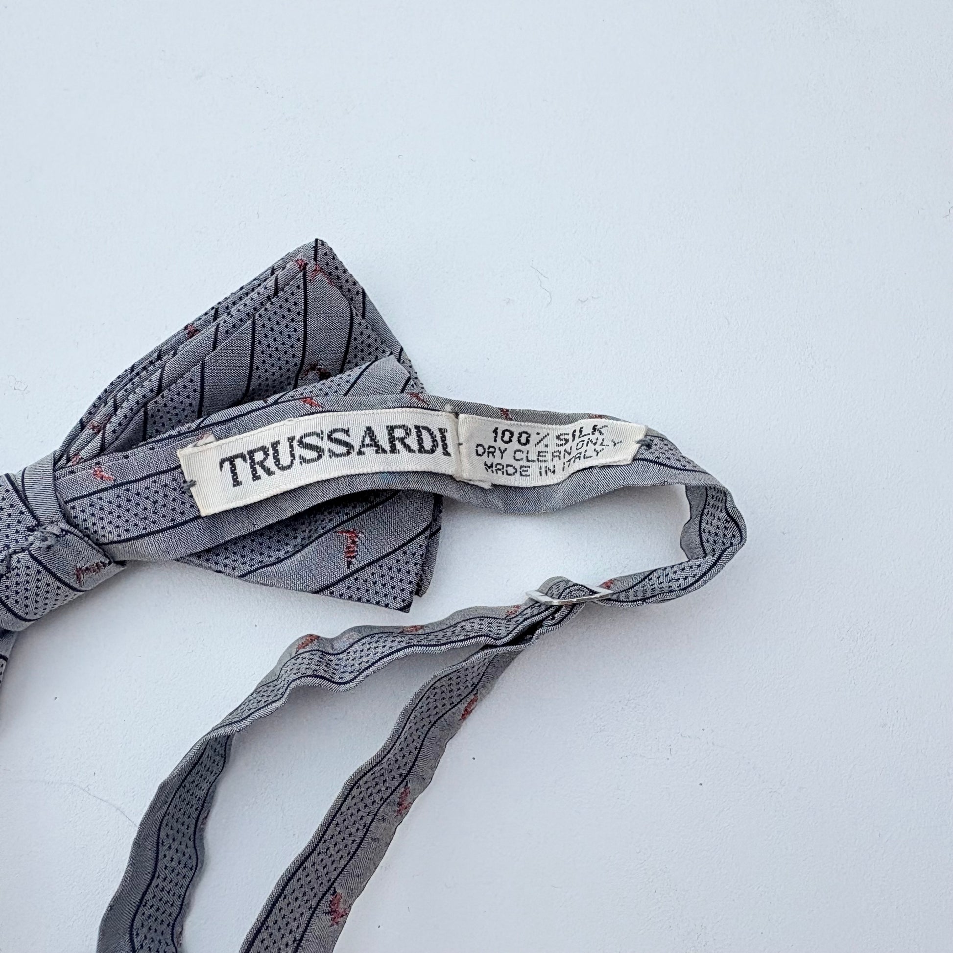 Papillon Trussardi in pura seta con fantasia in grigio e il classico levriero .