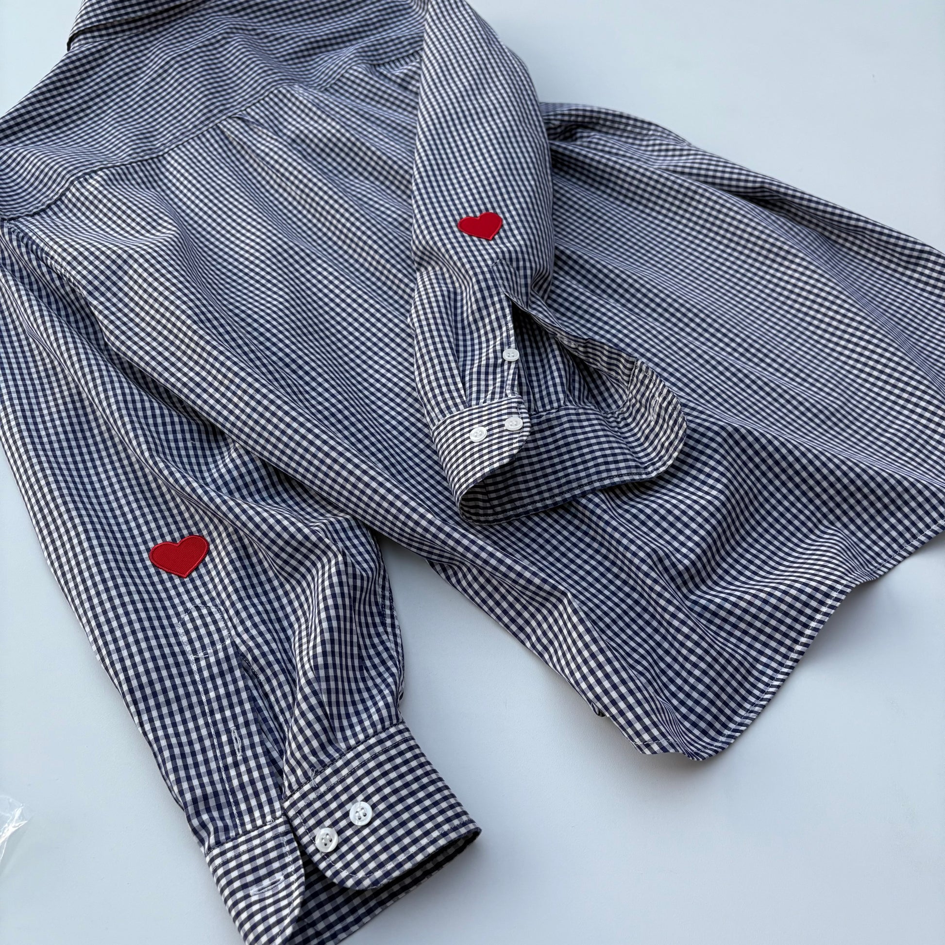 piccole patch con cuori vicino ai polsini.