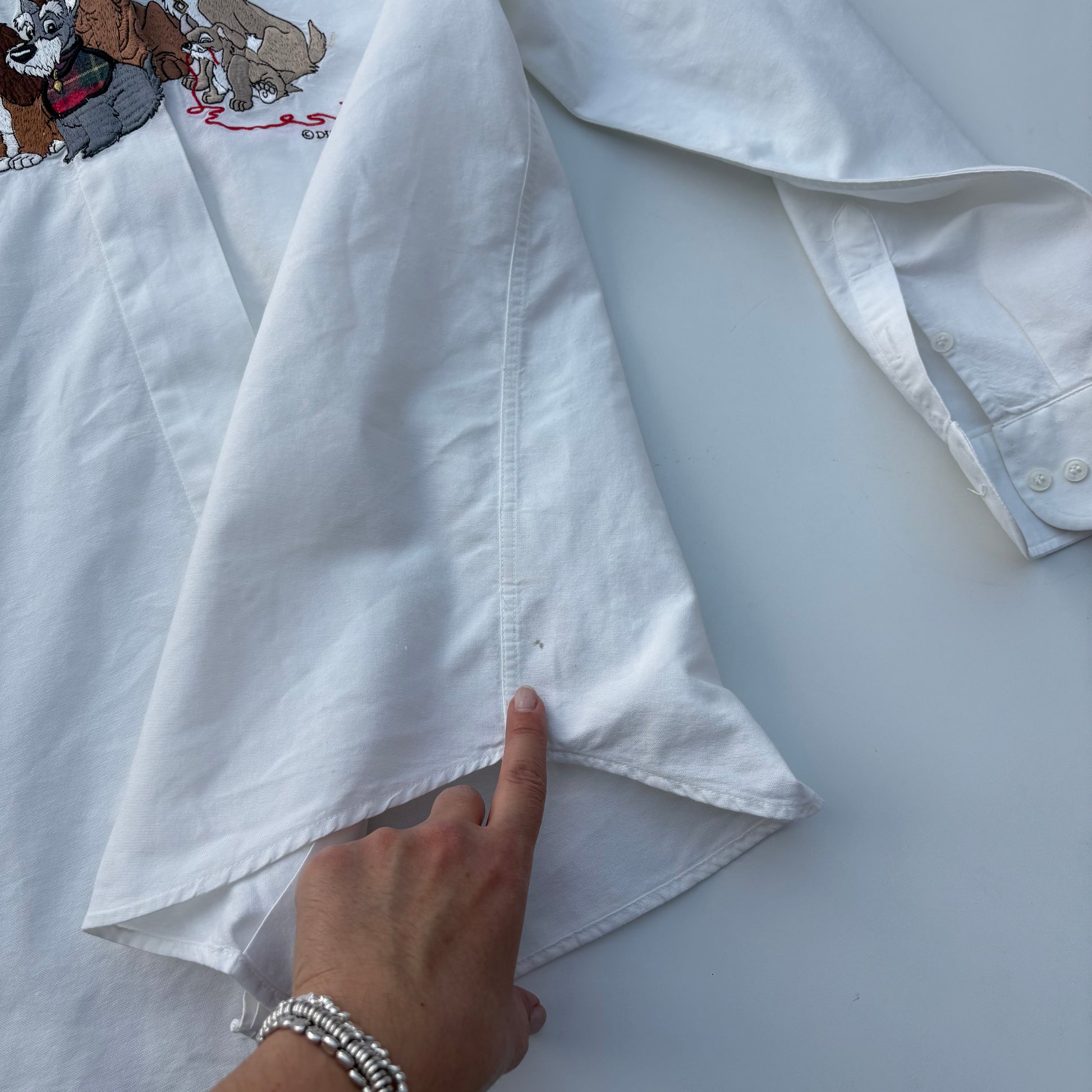 Camicia vintage anni 90 di Schvili, in cotone bianco tipo Oxford e ricamo dedicato a Lilli e Company.