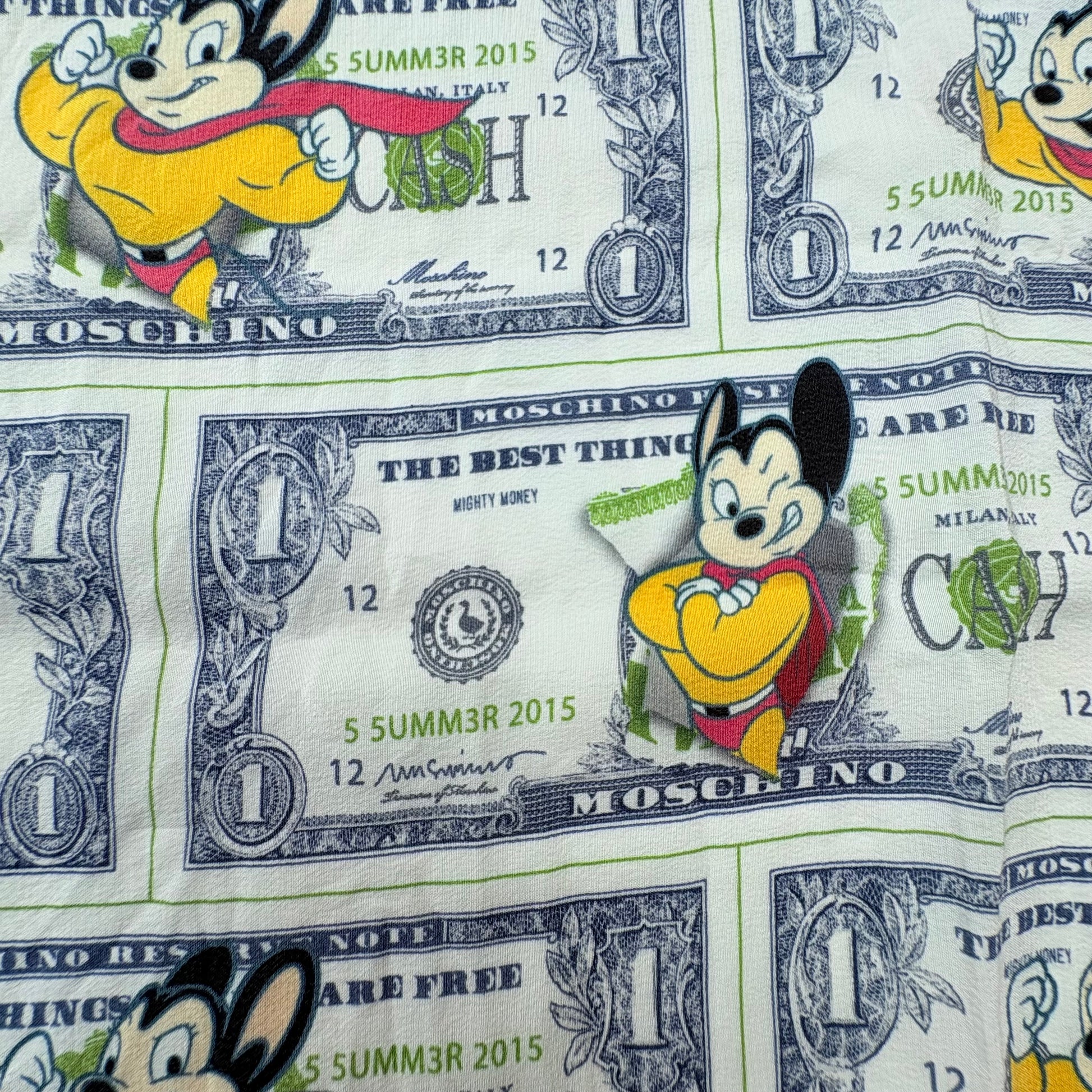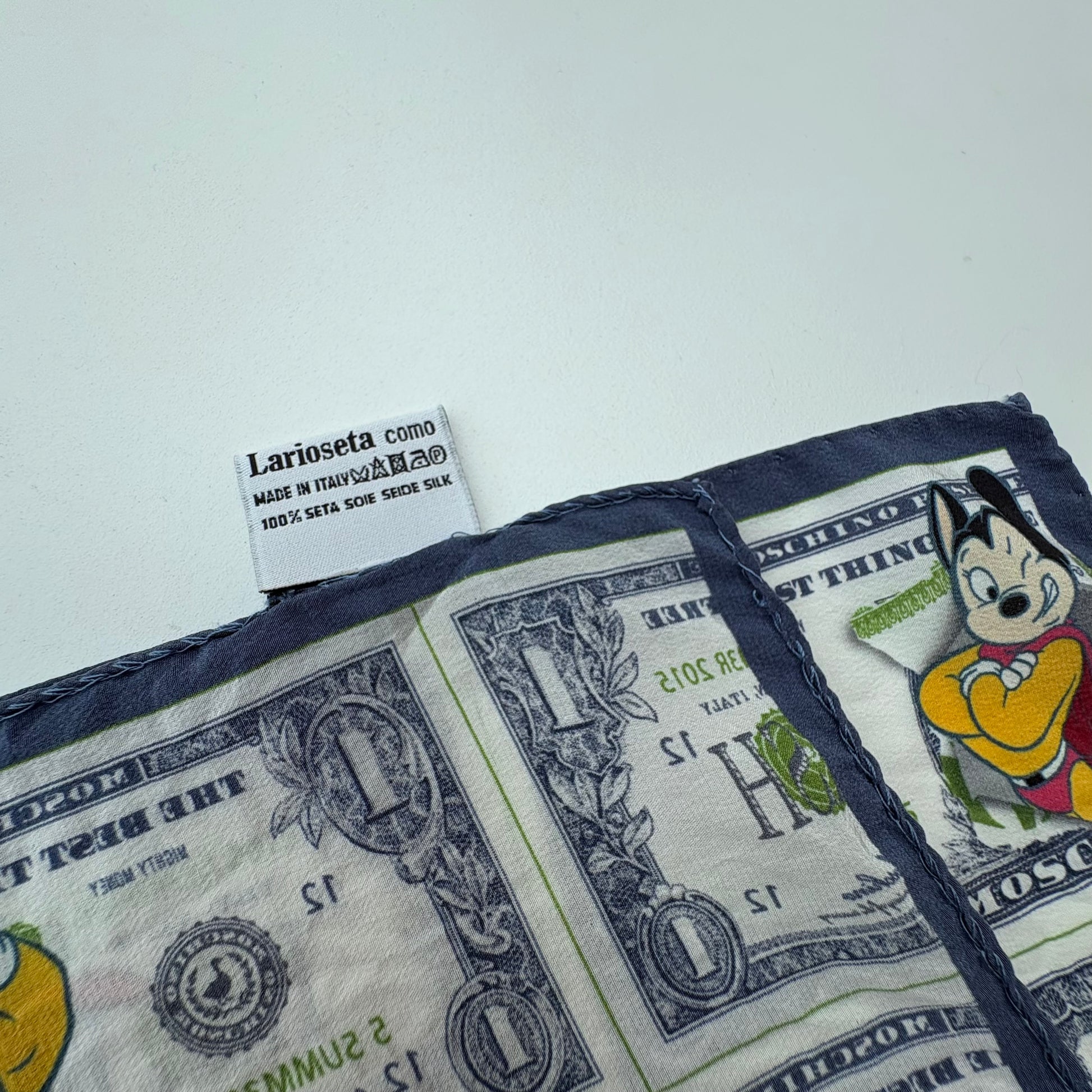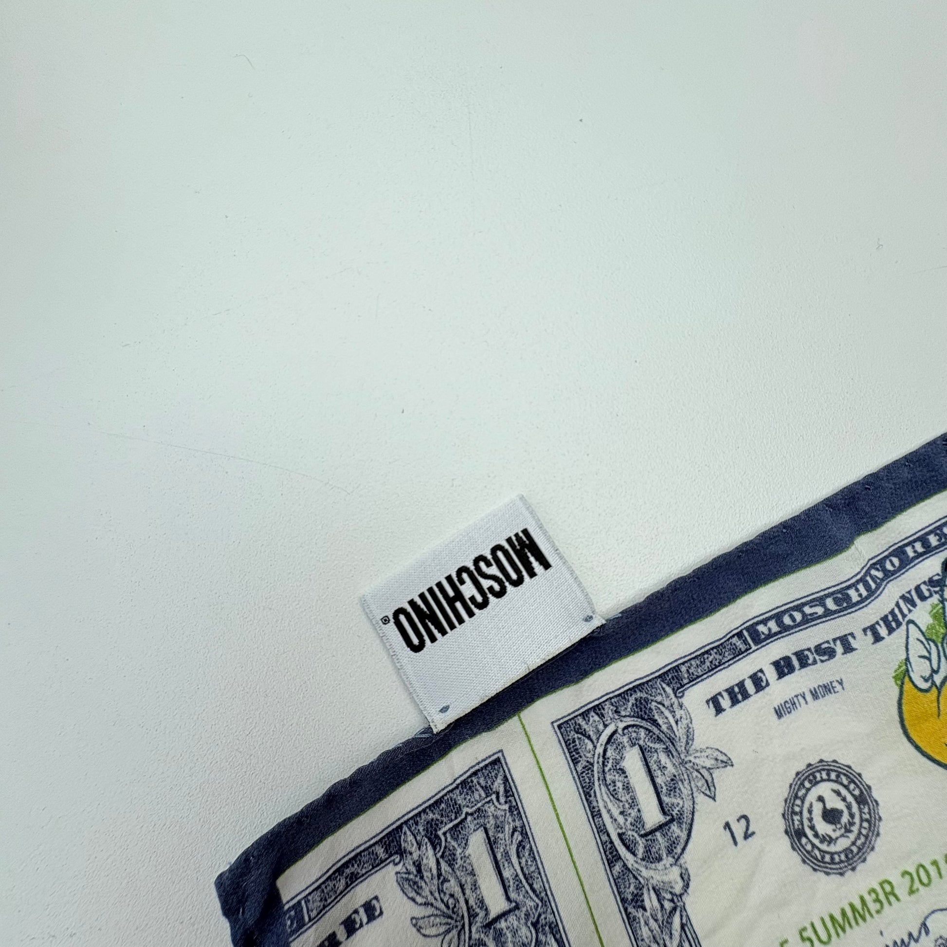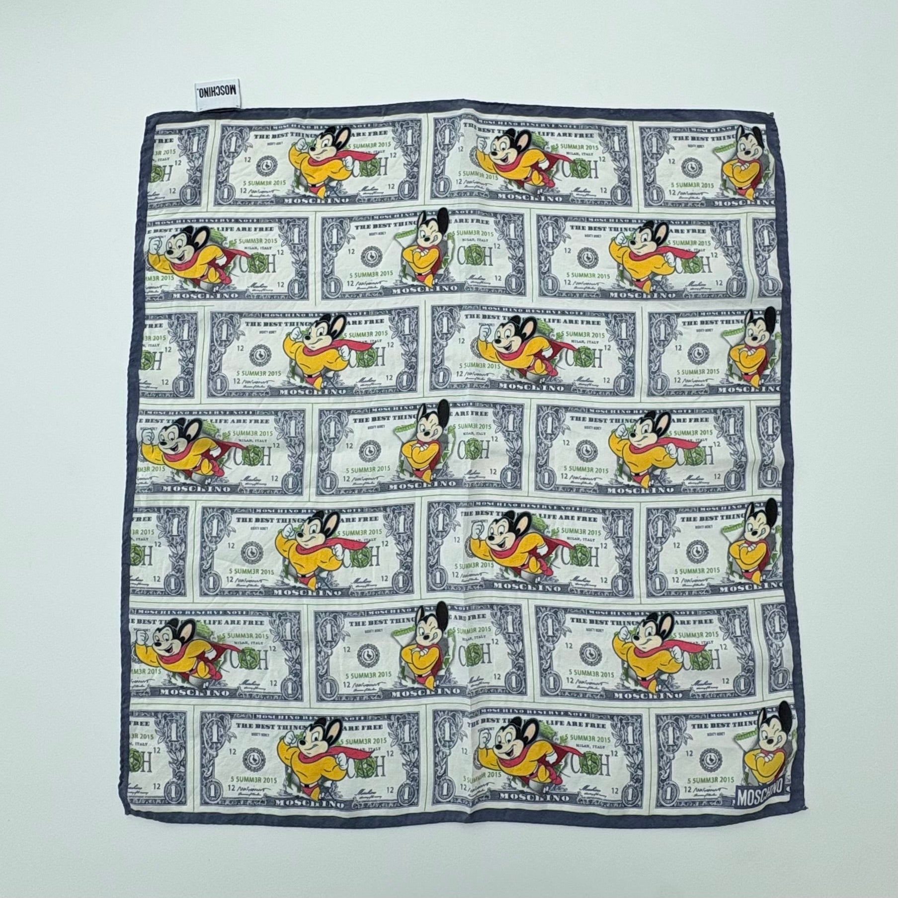 Strangolino-mini foulard di Moschino in seta Lario Como. Geniale come sempre la stampa: “le cose migliori nella vita sono gratis” .