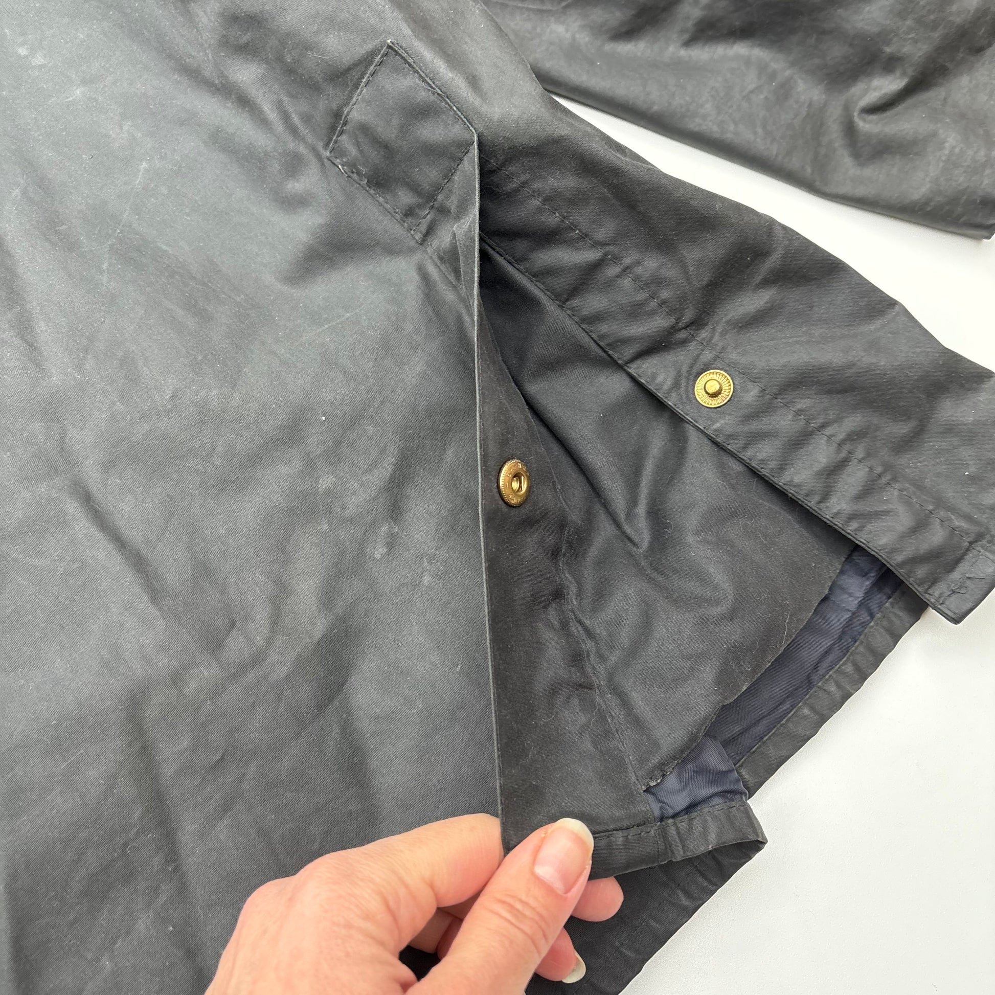 Meraviglioso Barbour modello Beaufort nella tonalità blu- grigio . Interno con tipico tartan in tinta.