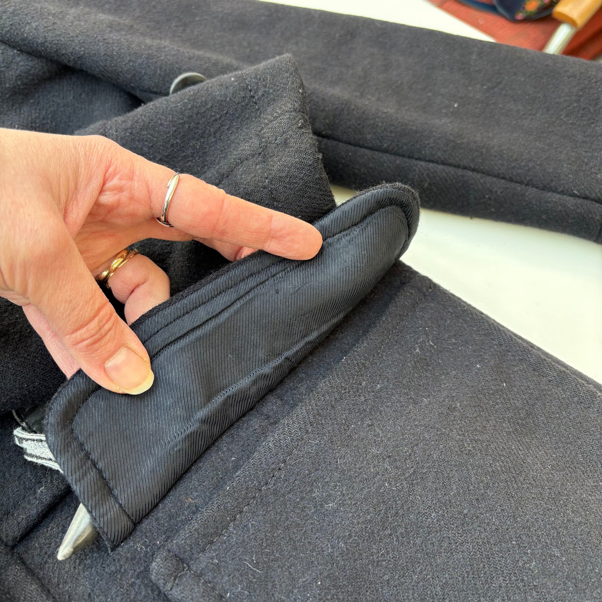 La fodera di una delle due patte è stata risistemata.