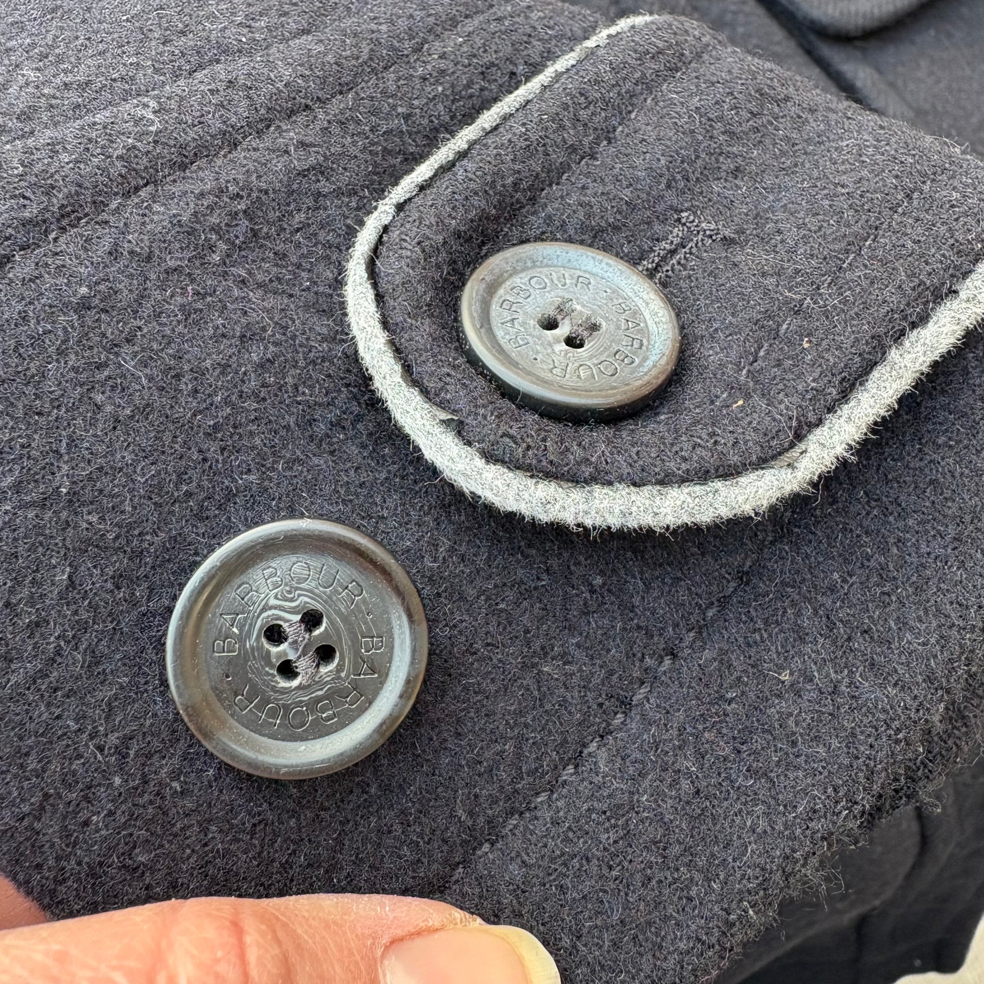 Stupendo Barbour modello montgomery in panno di lana blu.