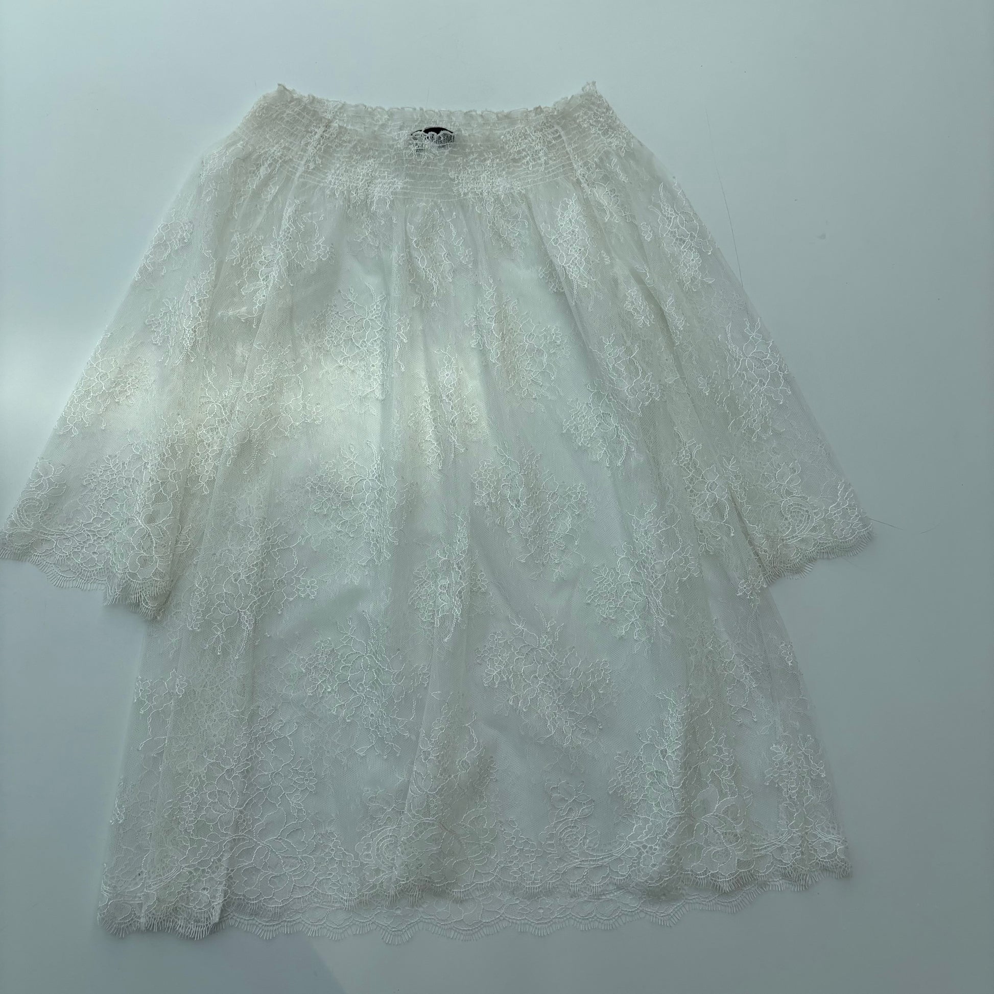 Stupenda e romantica blusa in pizzo Chantilly e dentelle di Ermanno Scervino. Modello morbido con spalle lasciate fuori e manica a tre quarti.