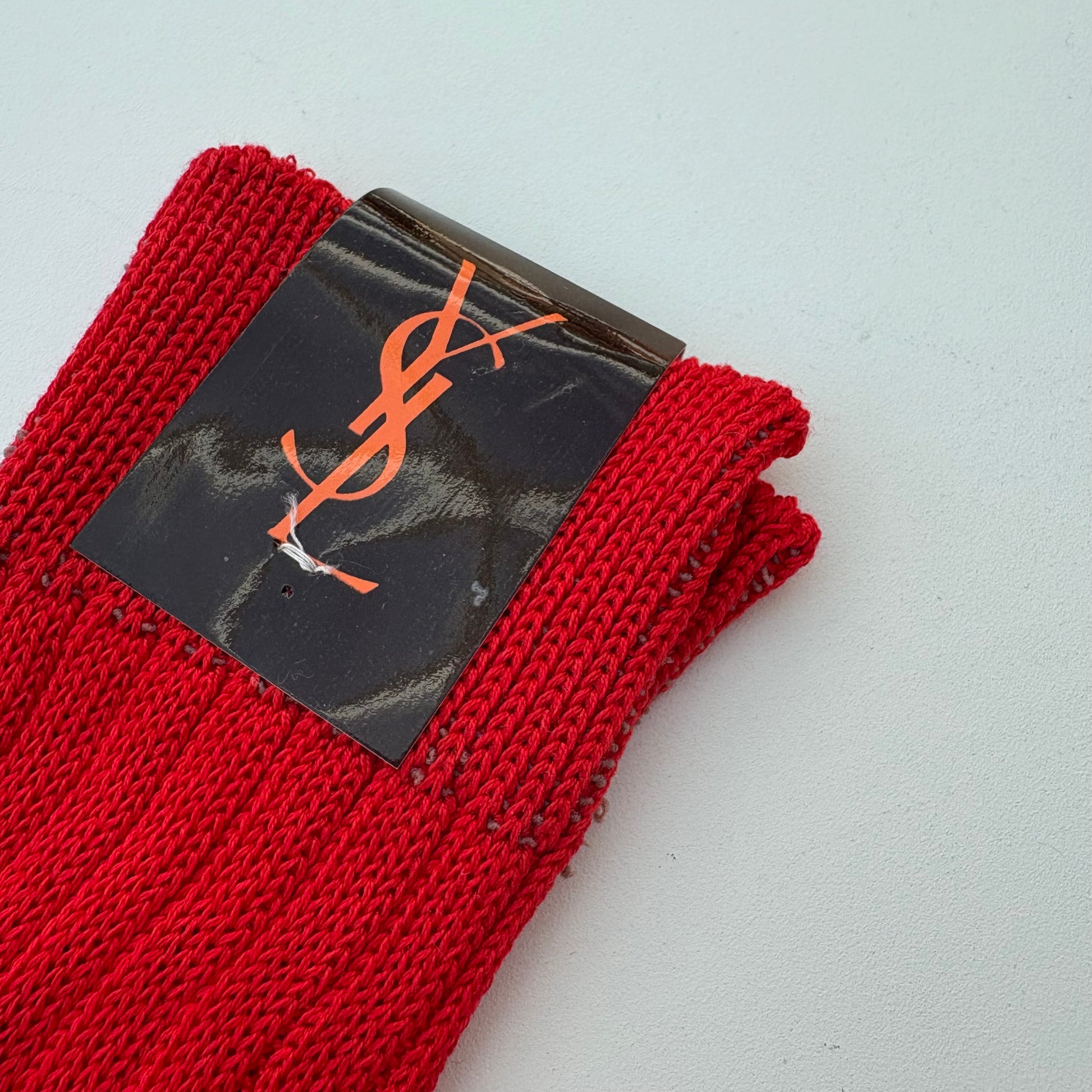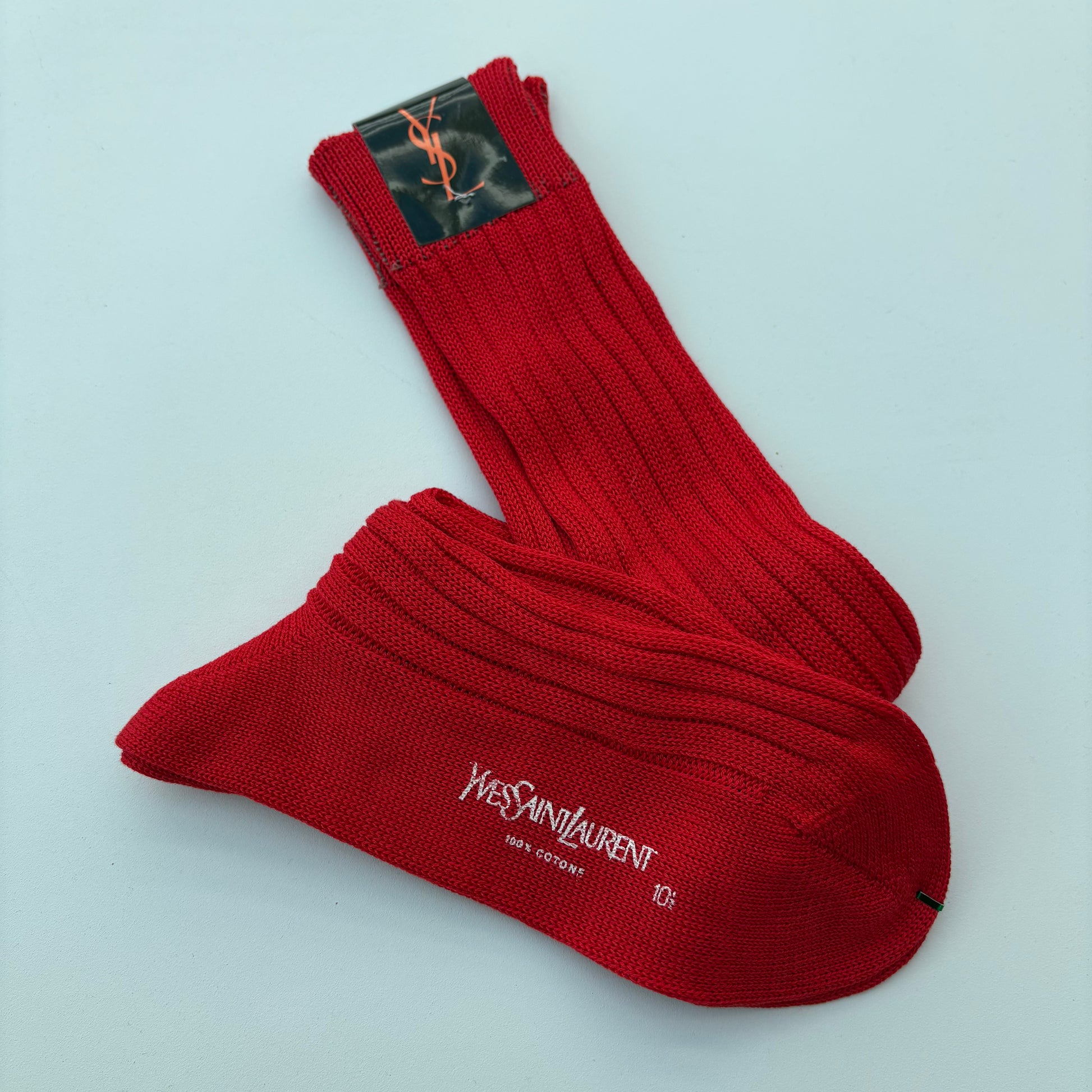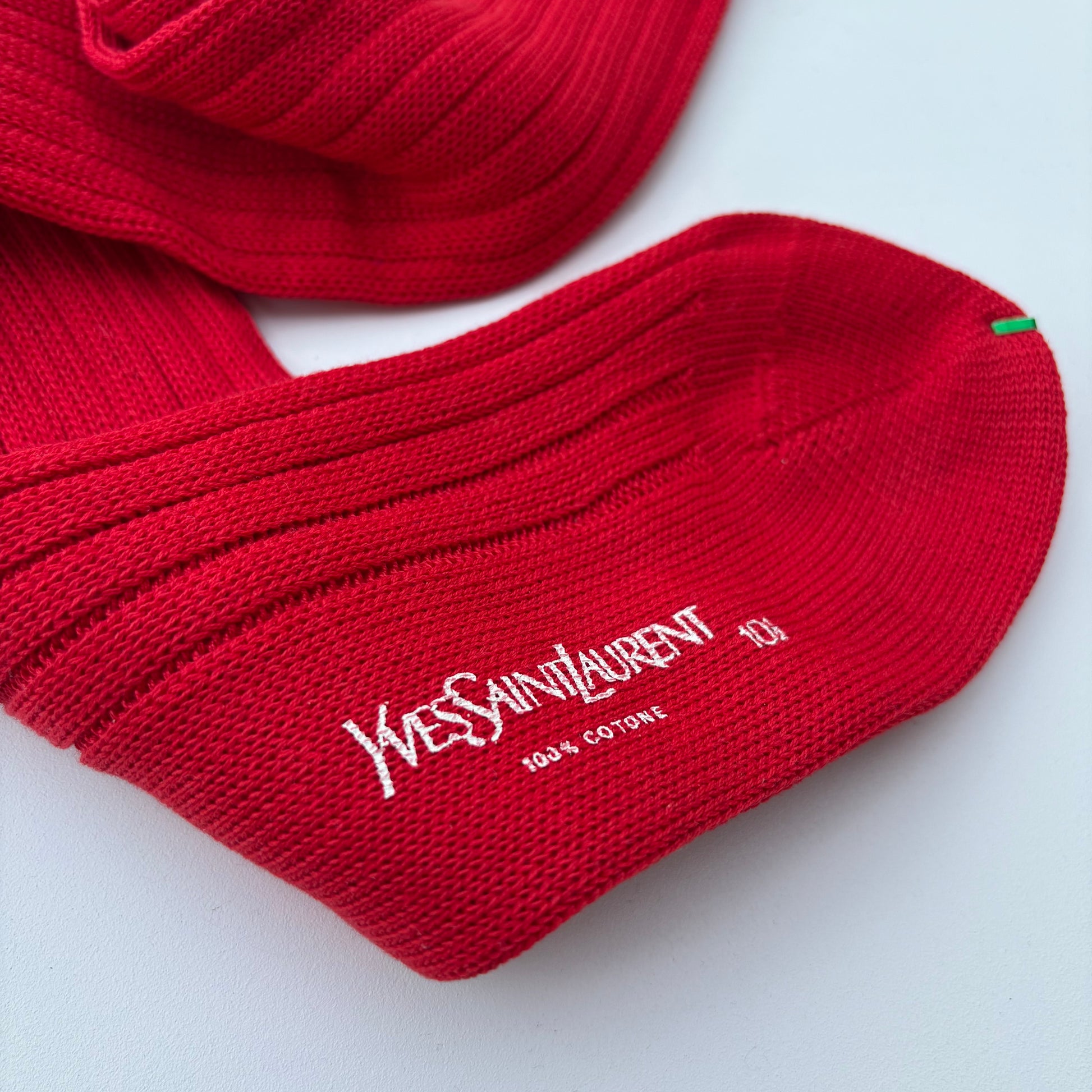 Calzettoni in 100% cotone a coste larghe diYSL, in una bellissima tonalità di rosso intenso.