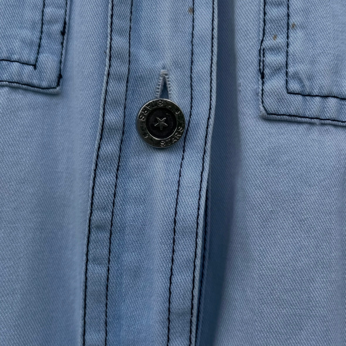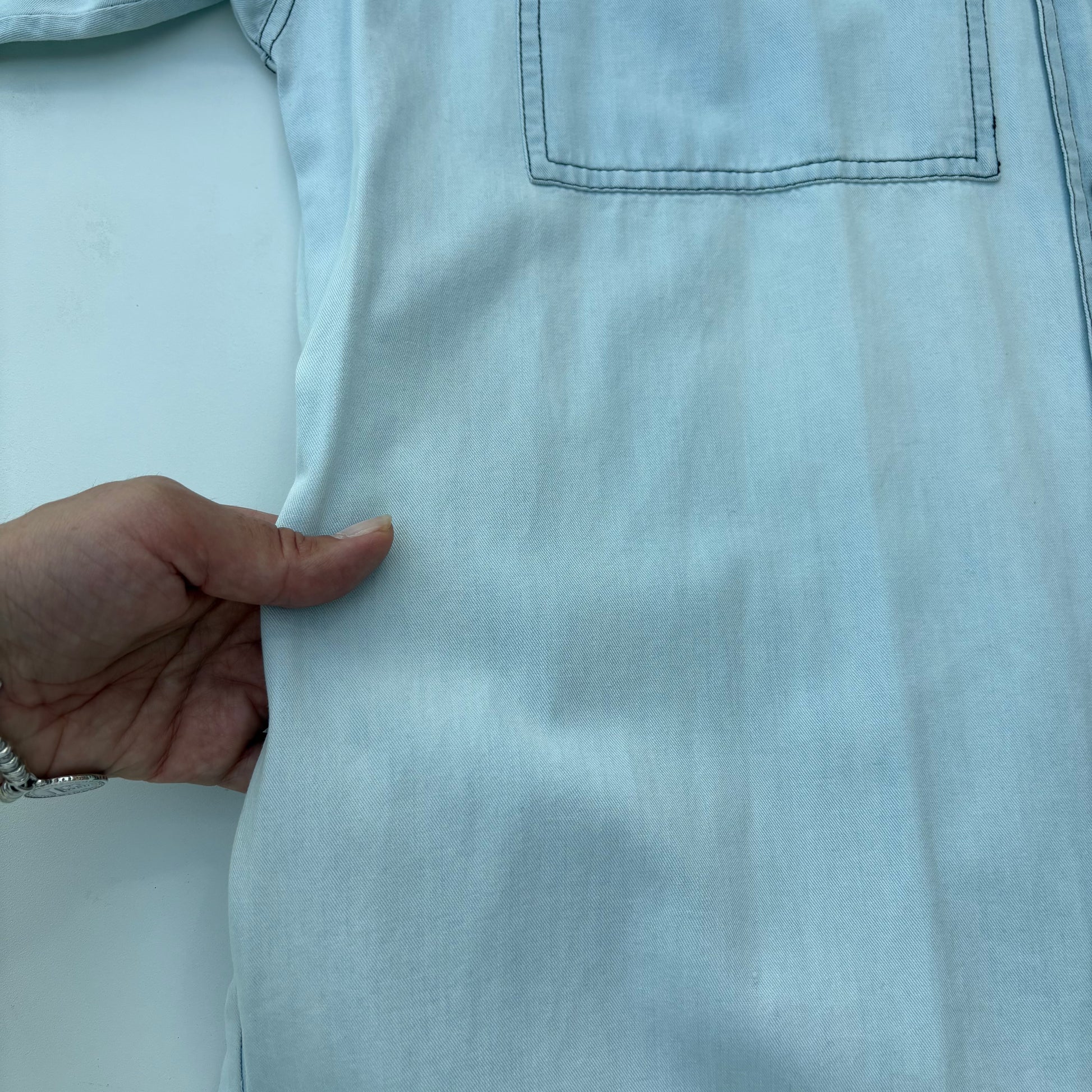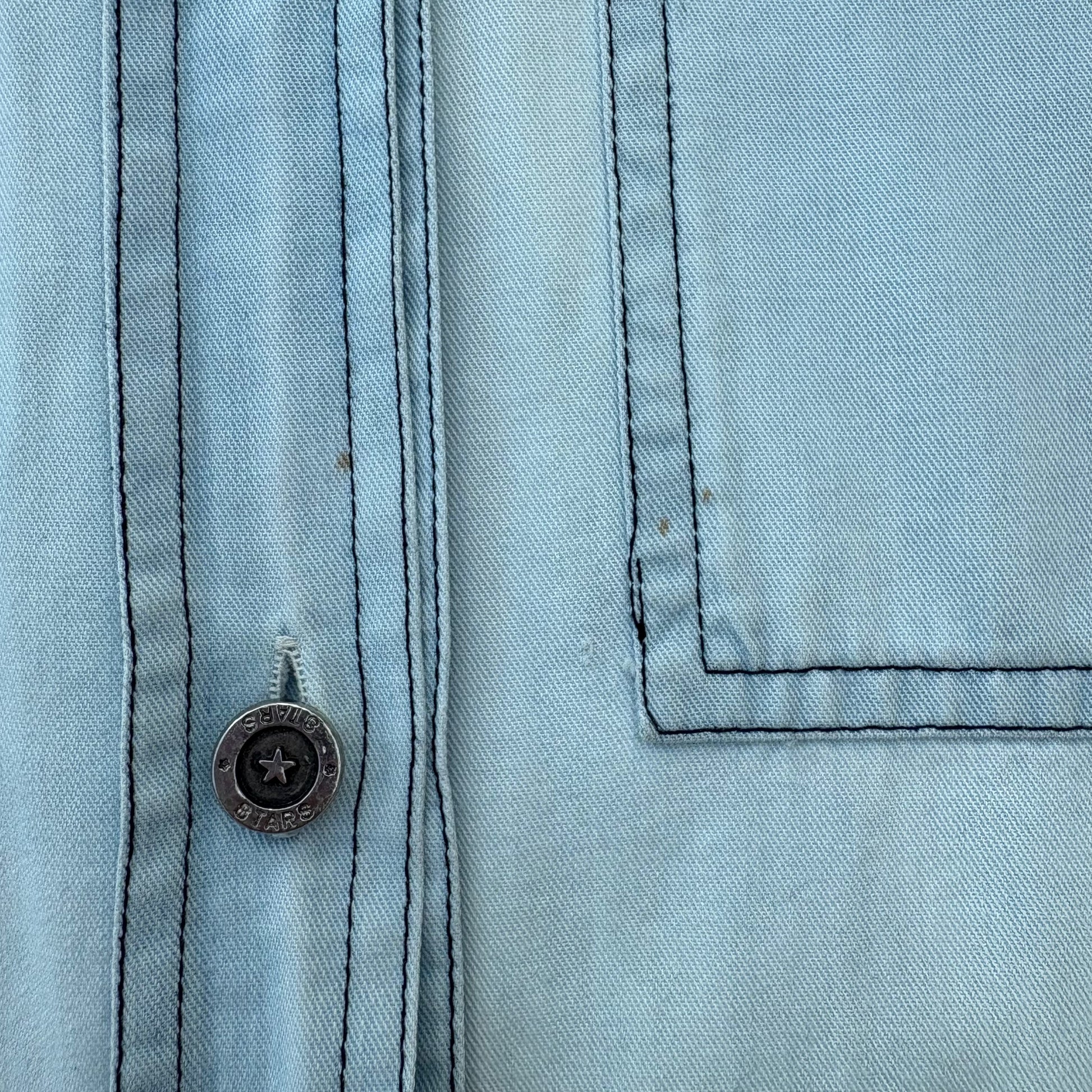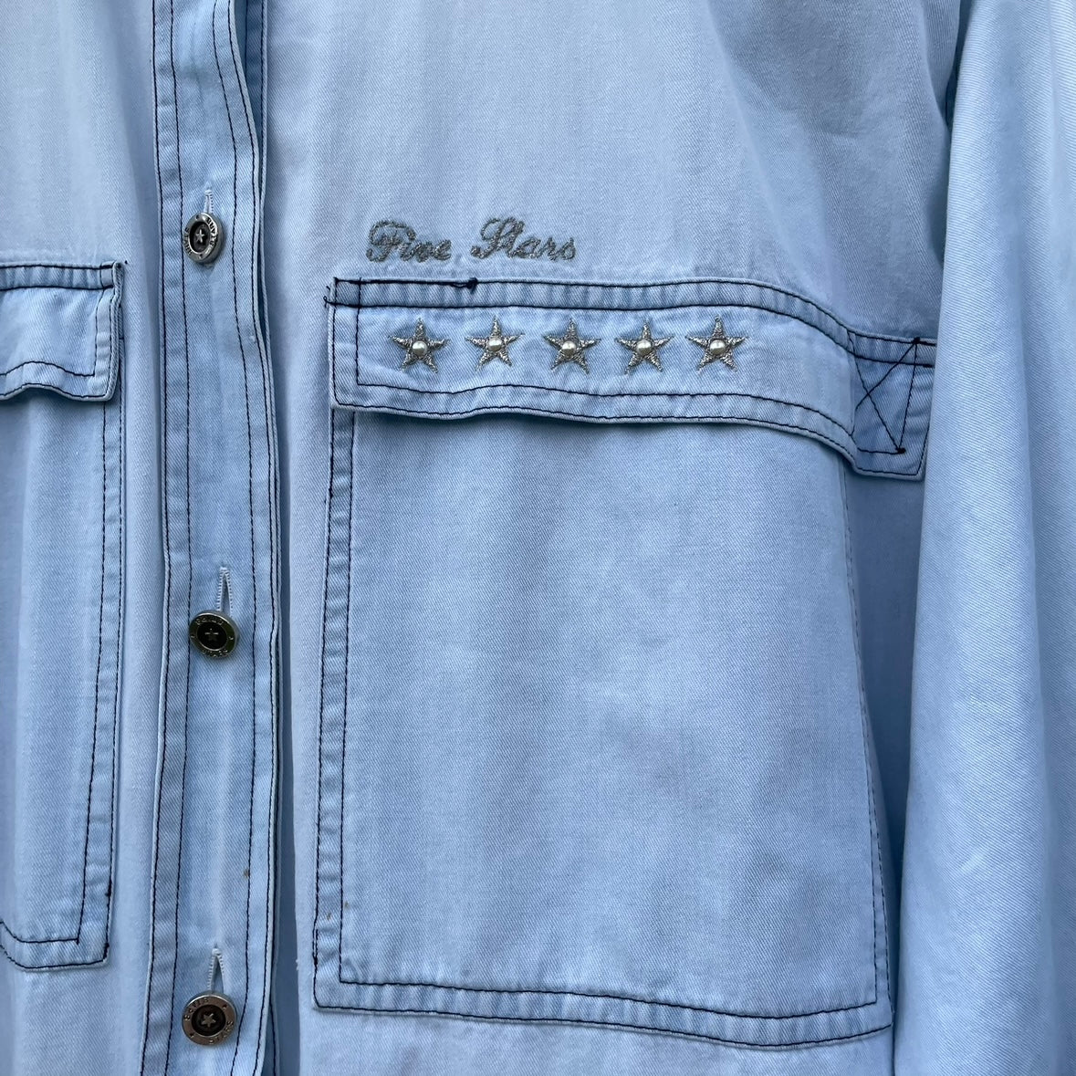 Anni 80 di Les Copains, chemisier in denim leggero e super morbido, lavaggio azzurro chiarissimo con effetto delave.
