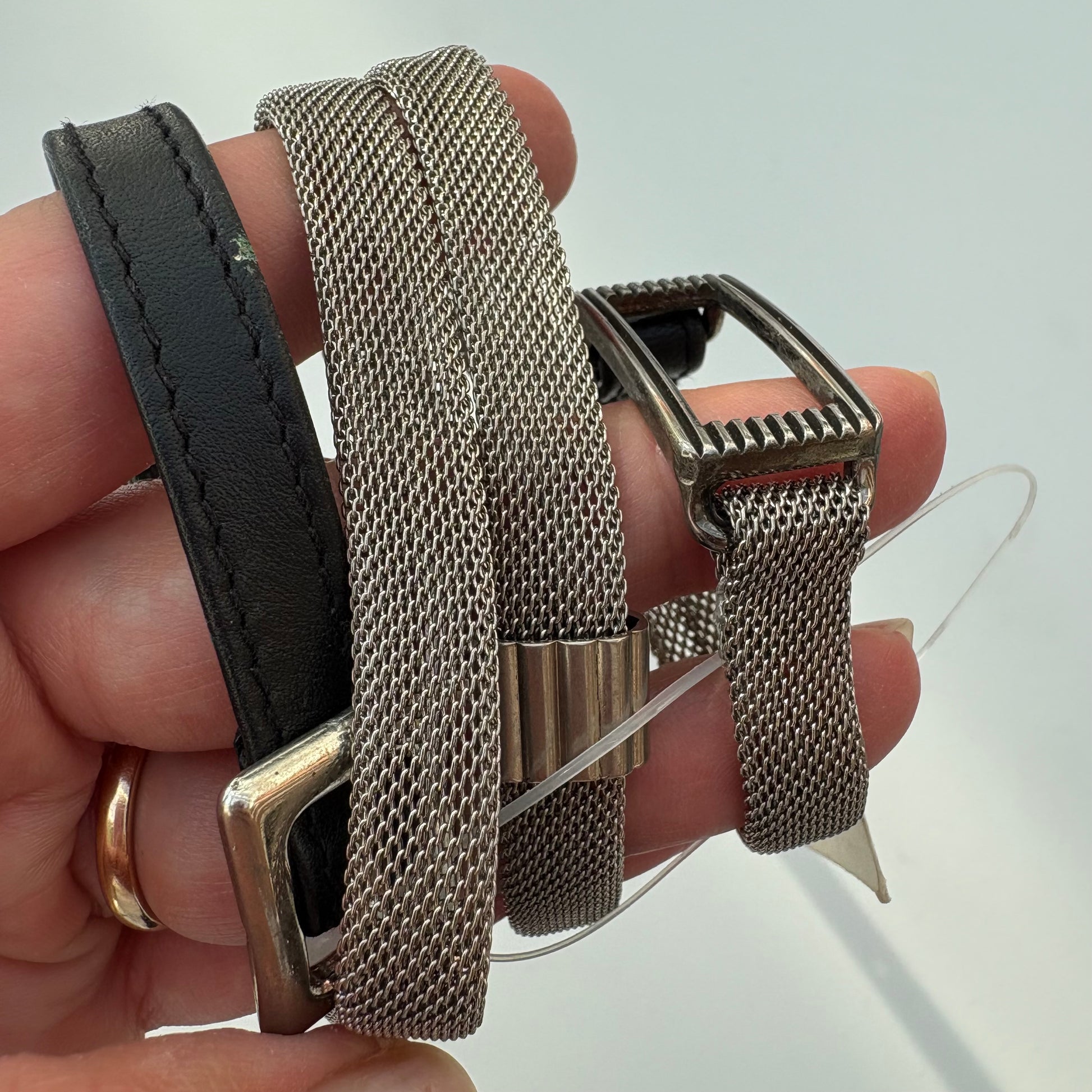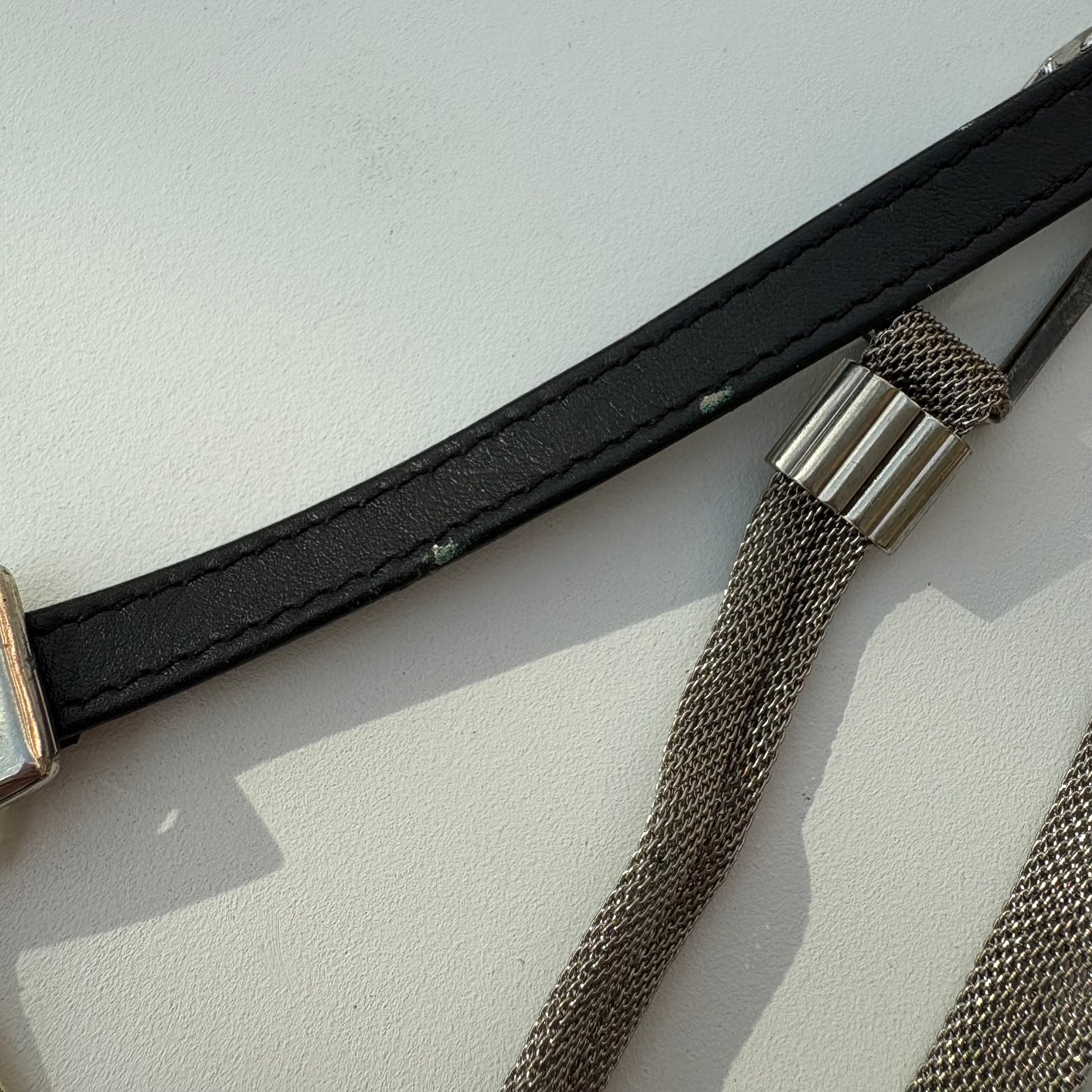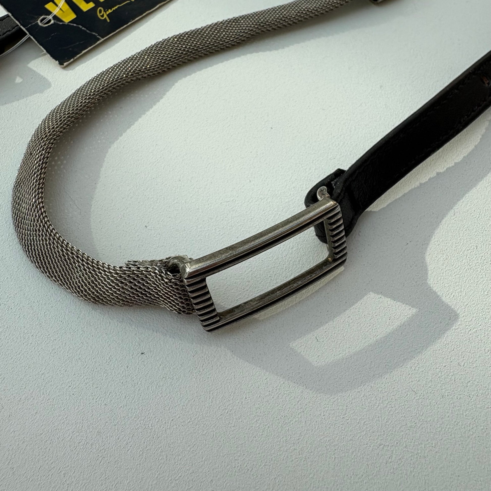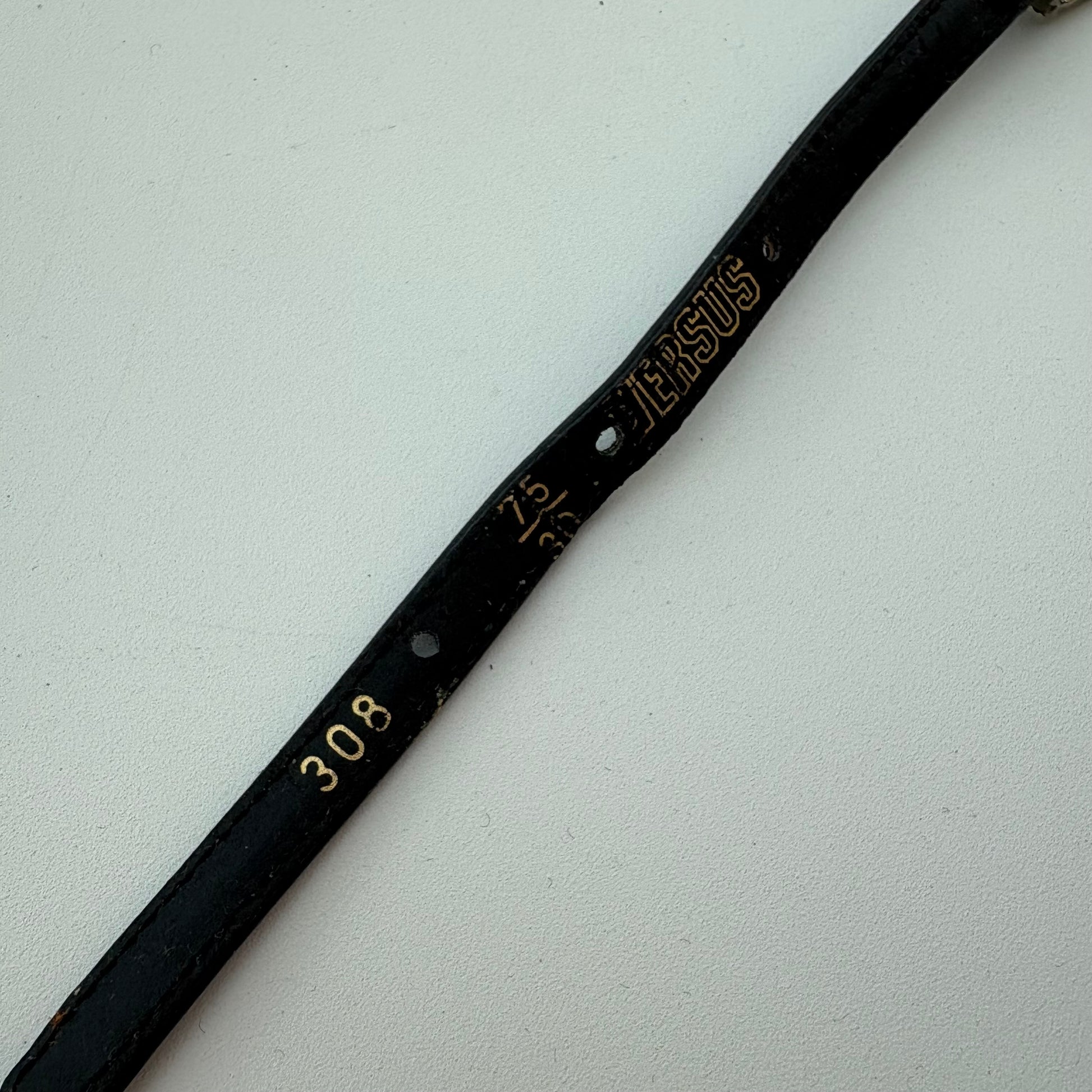 cinturina sottile in pelle nera con inserti in acciaio e snake in metallo brunito.