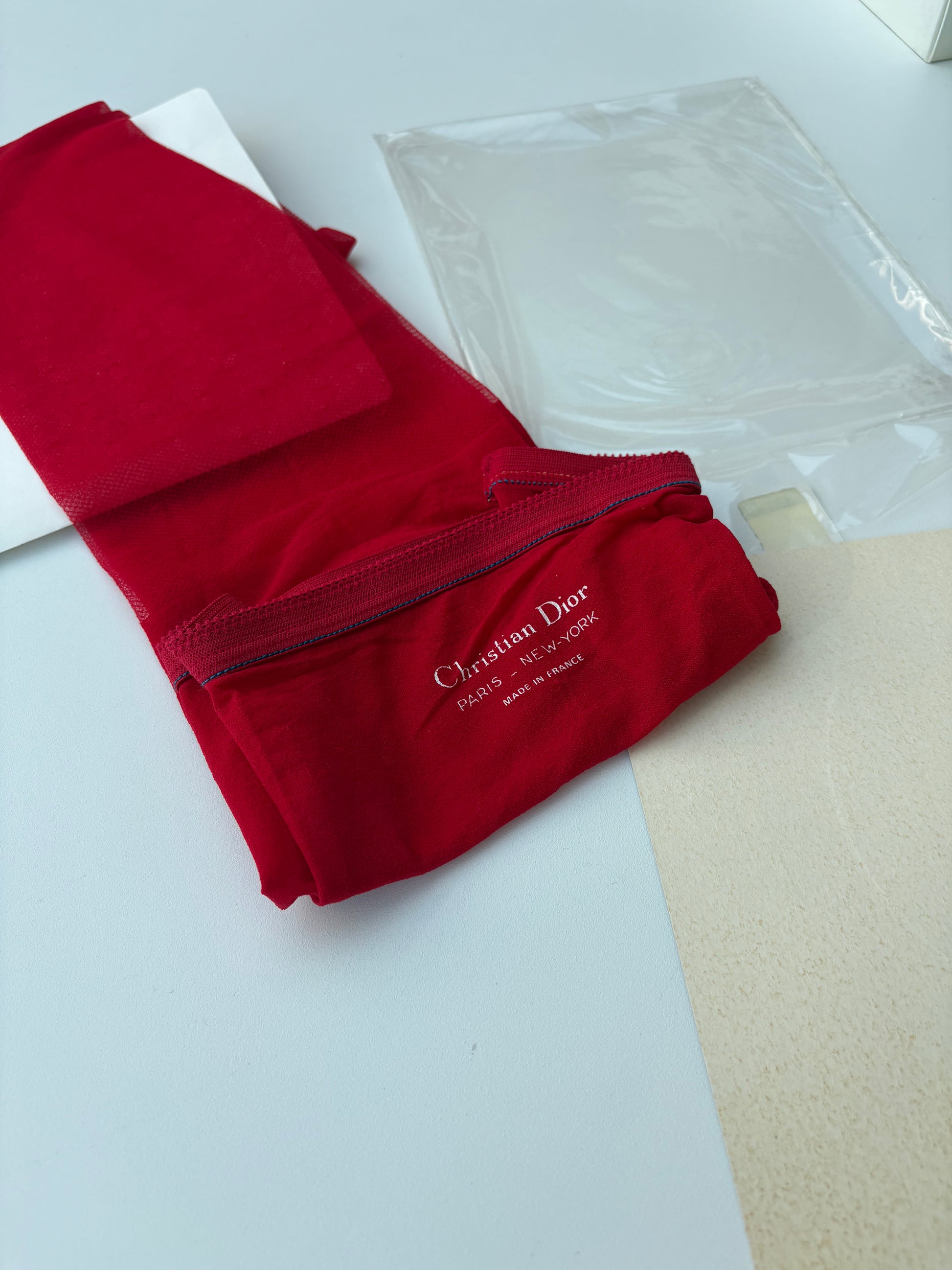 Collant Dior rosse , 17 denari, in poliammide con 2% seta naturale.