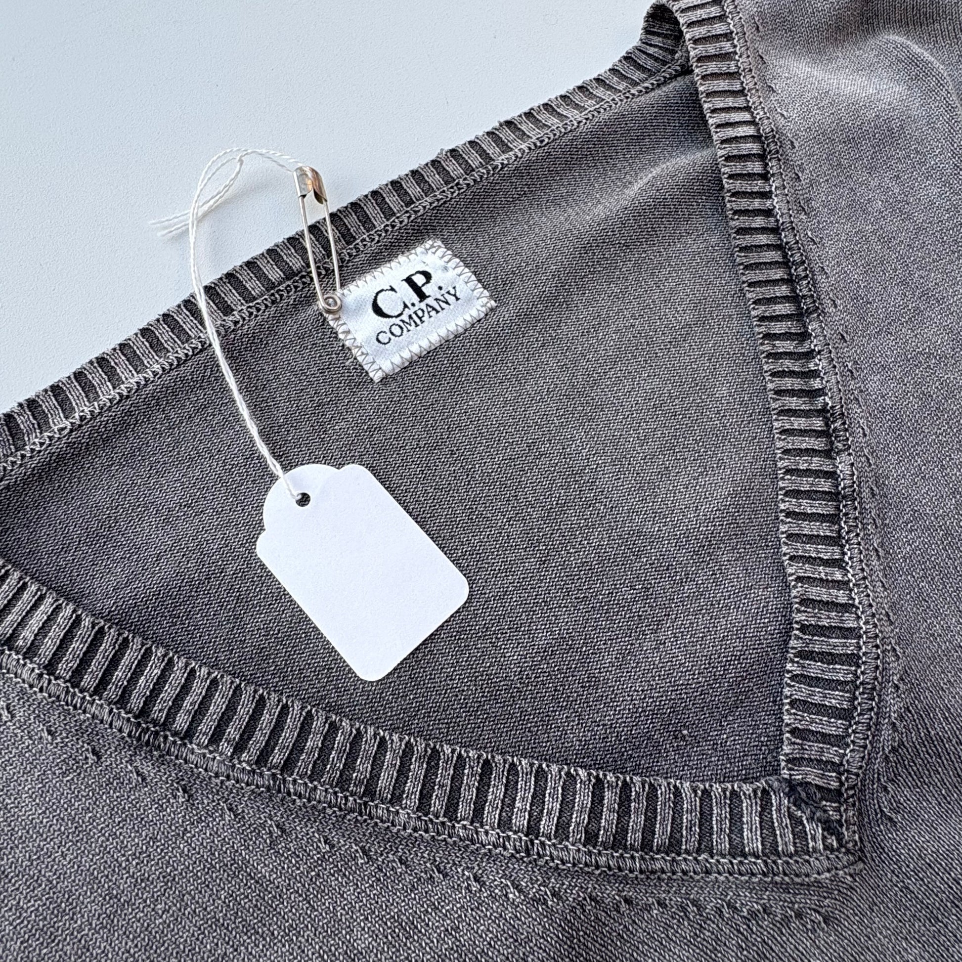 Maglione in cotone leggero di CP Company con scollo a V. Classica tintura in capo per un effetto delave’, perfetto per un look casual.
