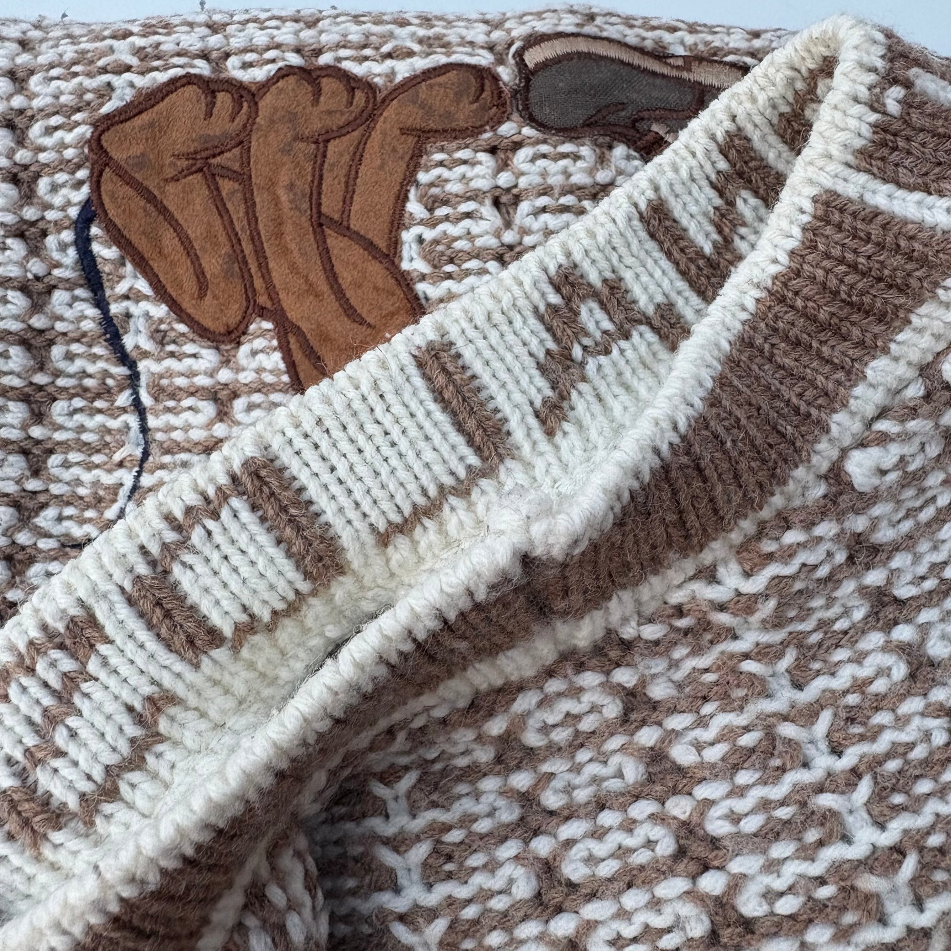 Vintage anni 90. Di Donaldson, bellissimo pullover, con lavorazione canestrata panna e caffelatte con ricamo centrale dedicato a Topolino.