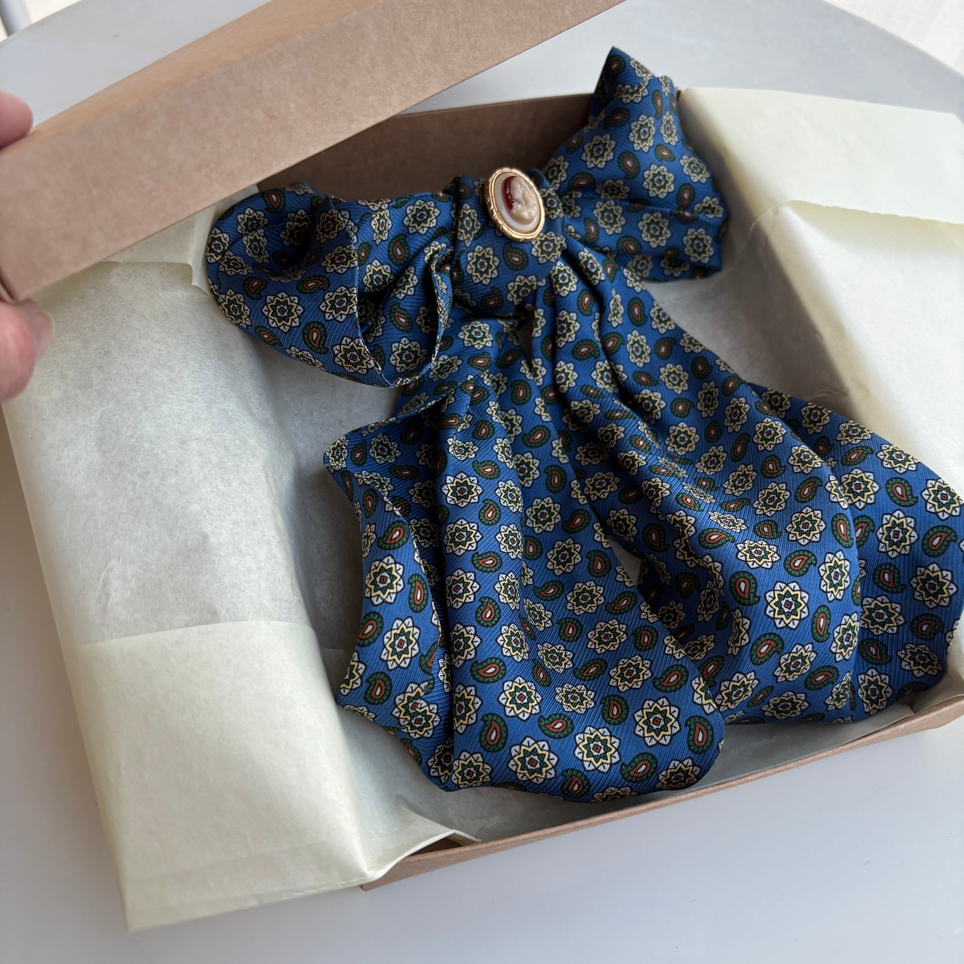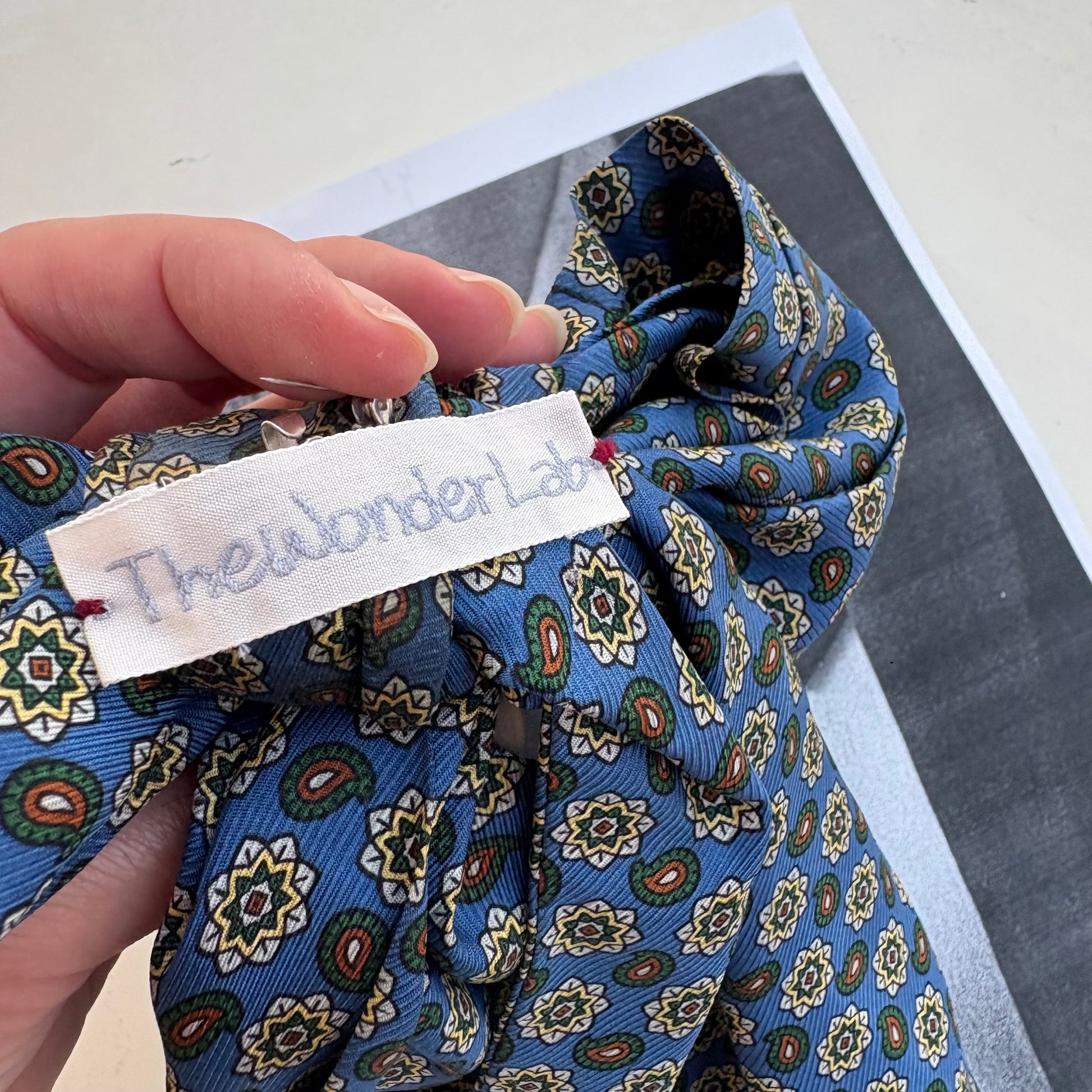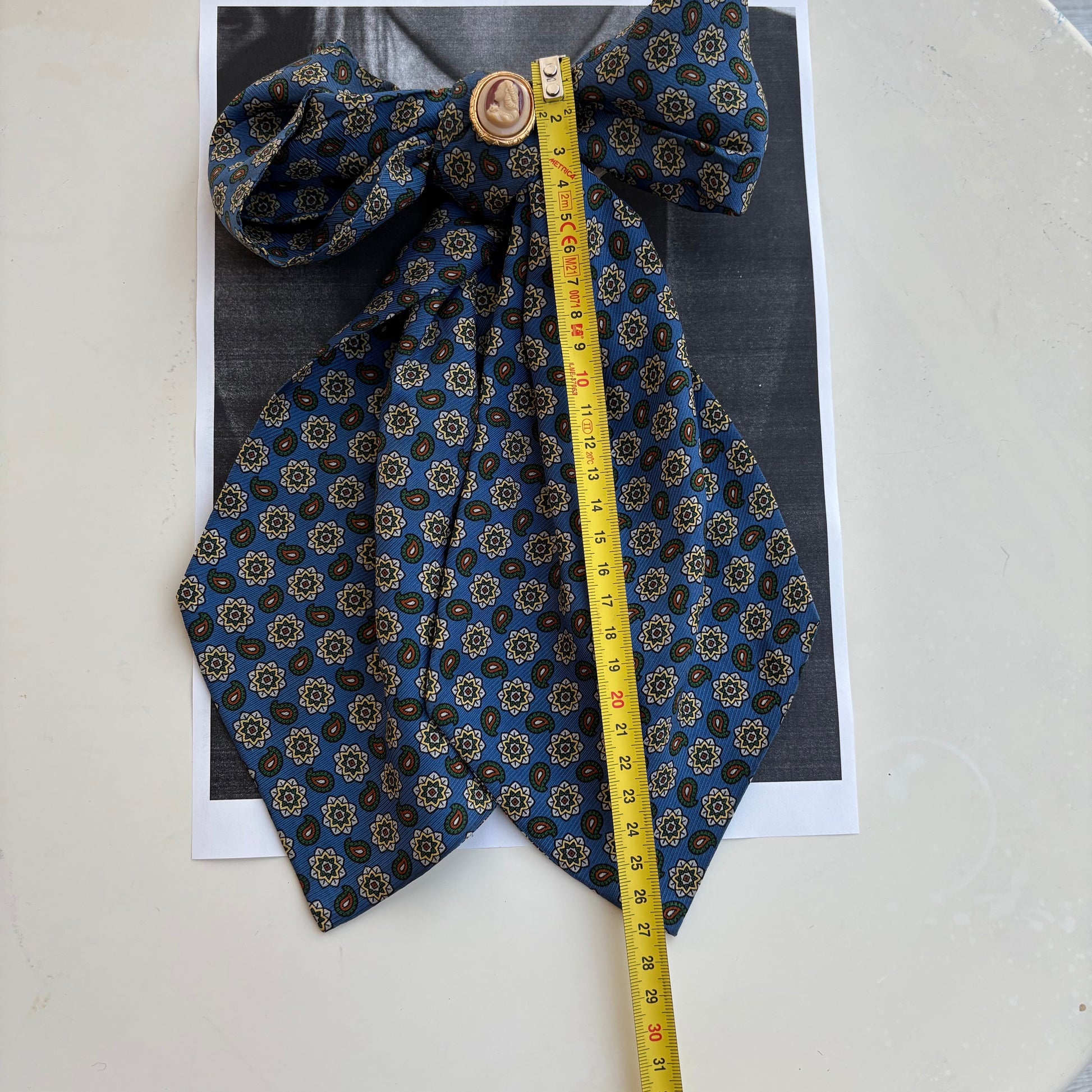 Realizzato con Ascot vintage in purissima seta, sono annodati e cuciti su supporti per spille.