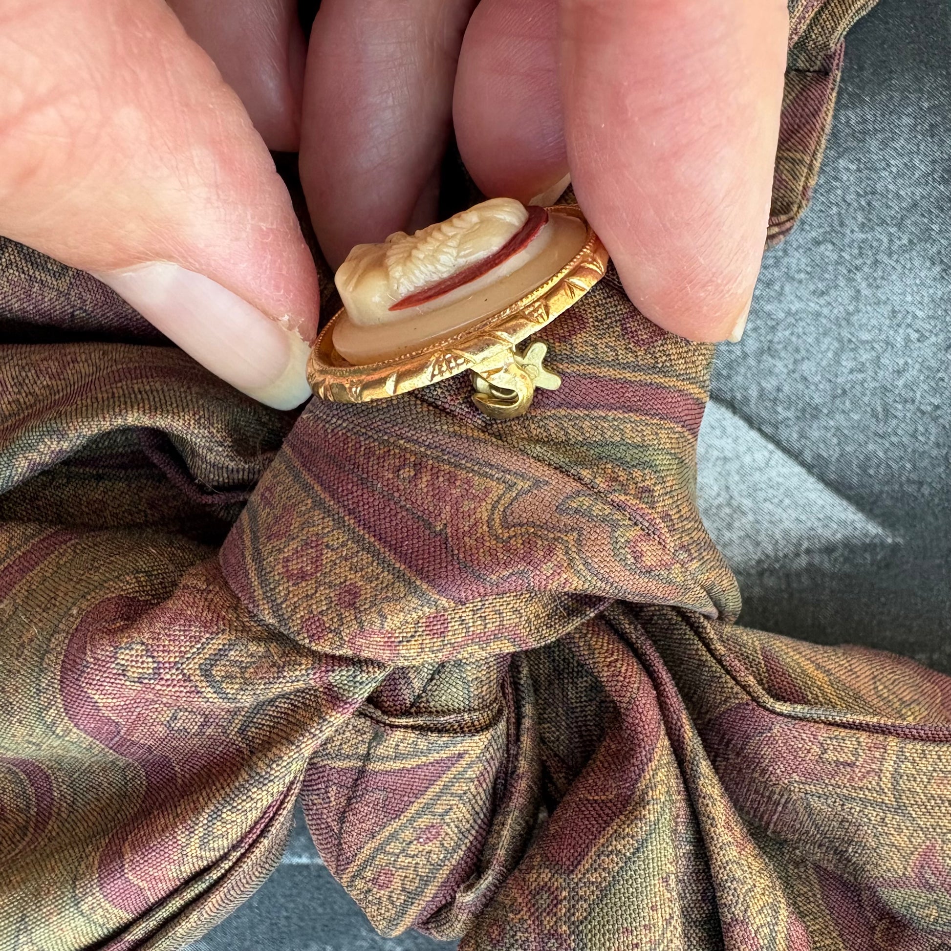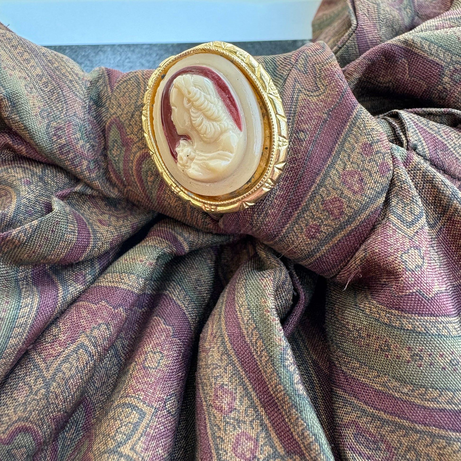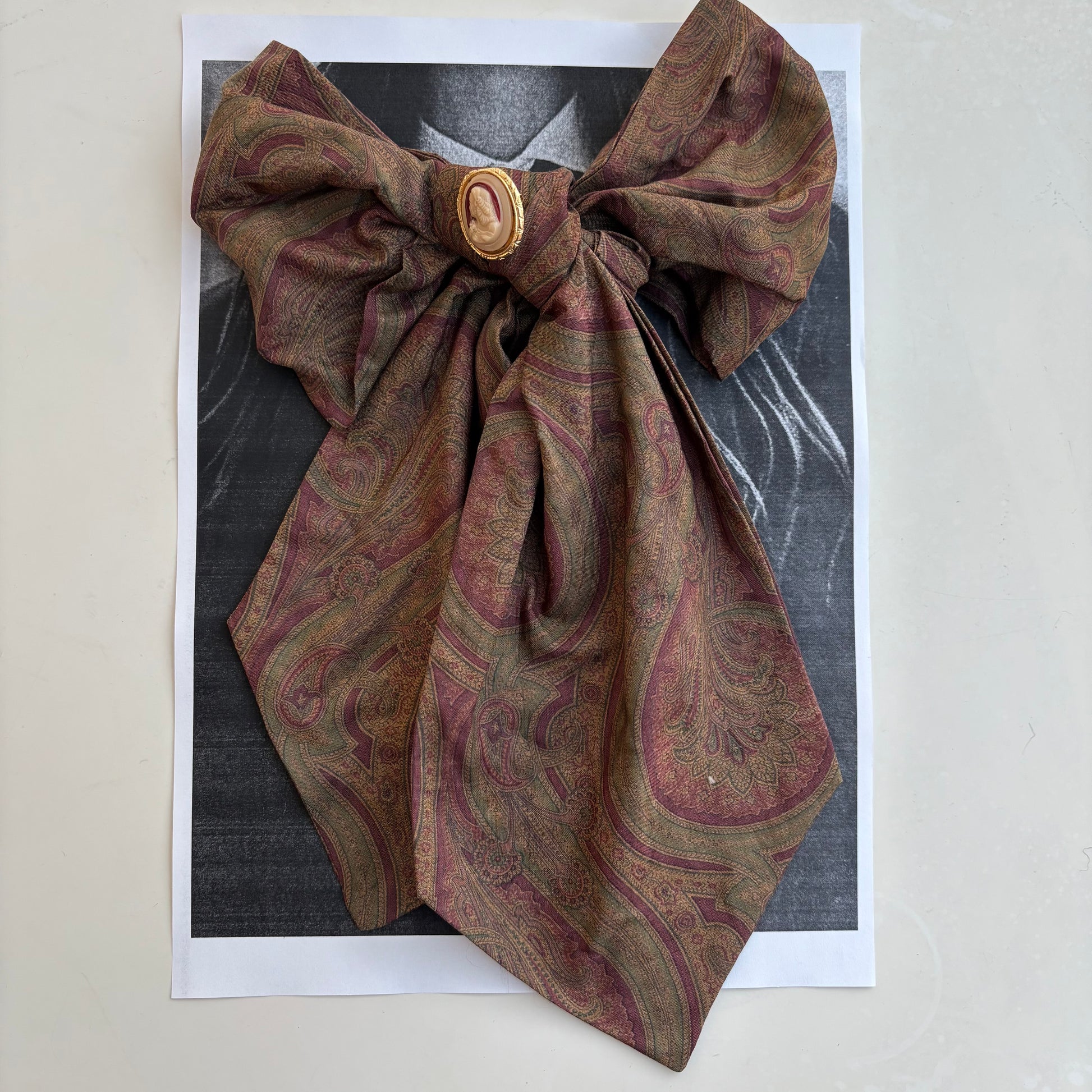 Realizzato con Ascot vintage in purissima seta, sono annodati e cuciti su supporti per spille.