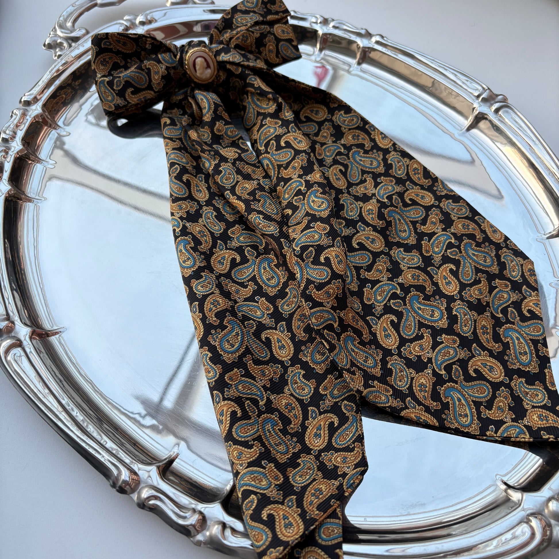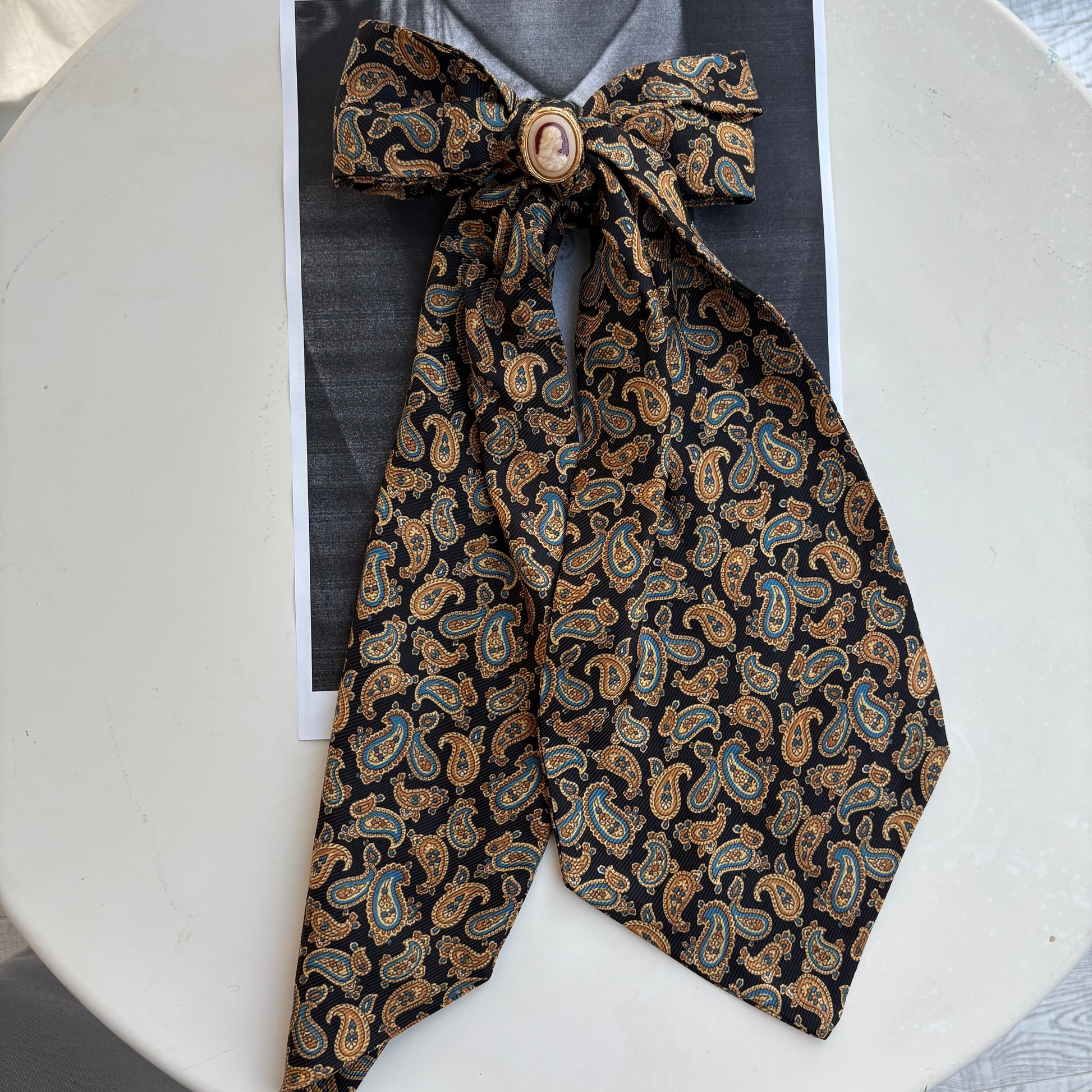 Realizzato con Ascot vintage in purissima seta, sono annodati e cuciti su supporti per spille.