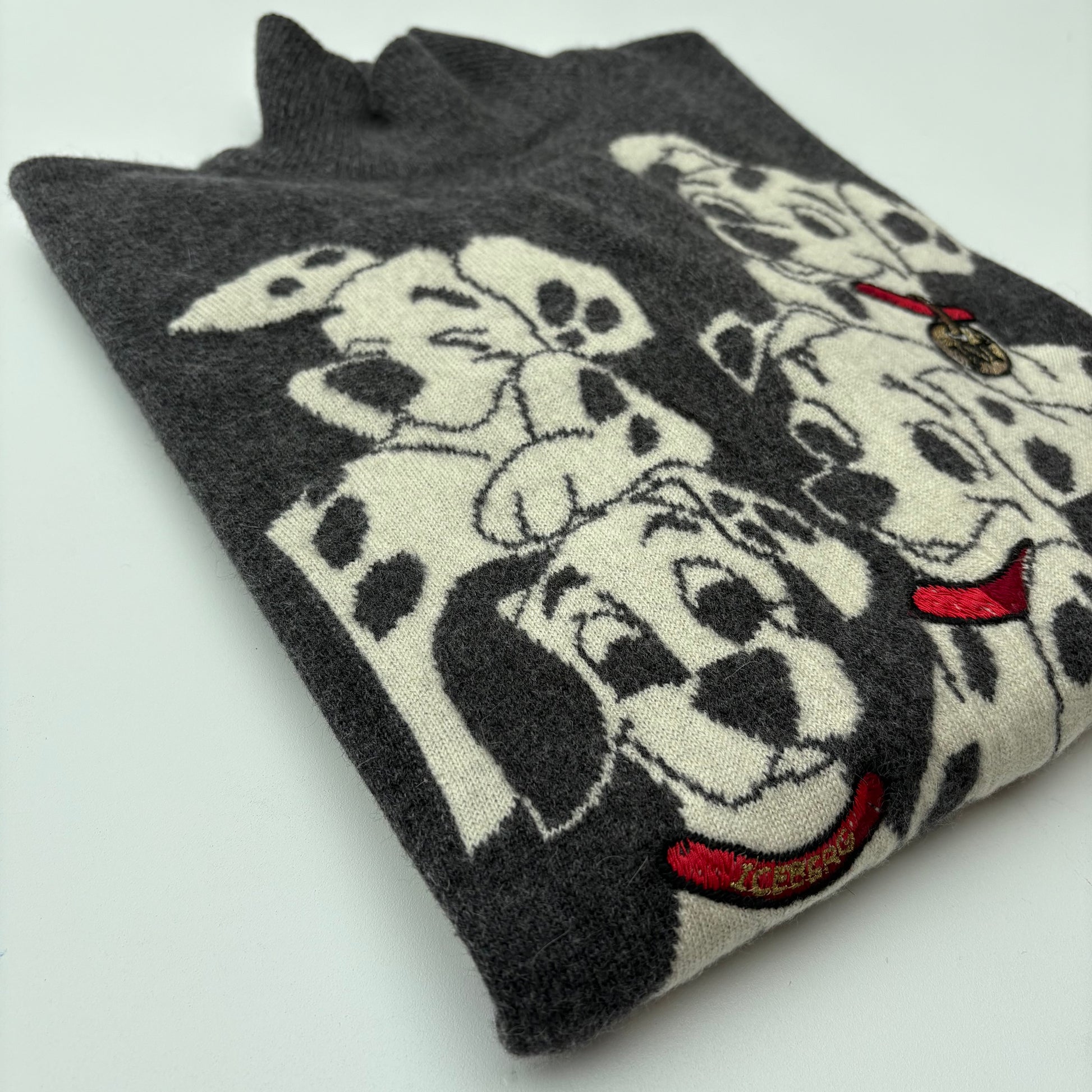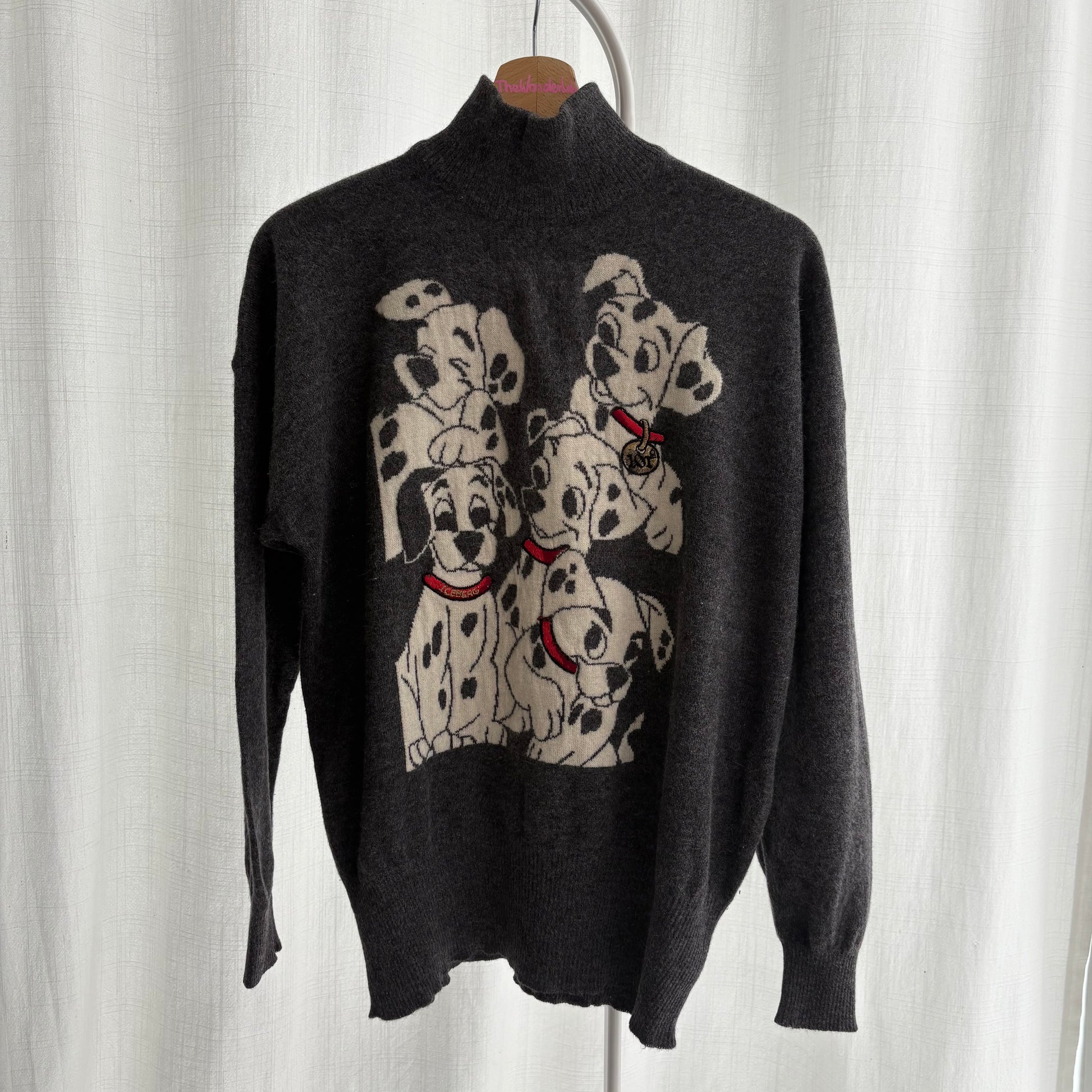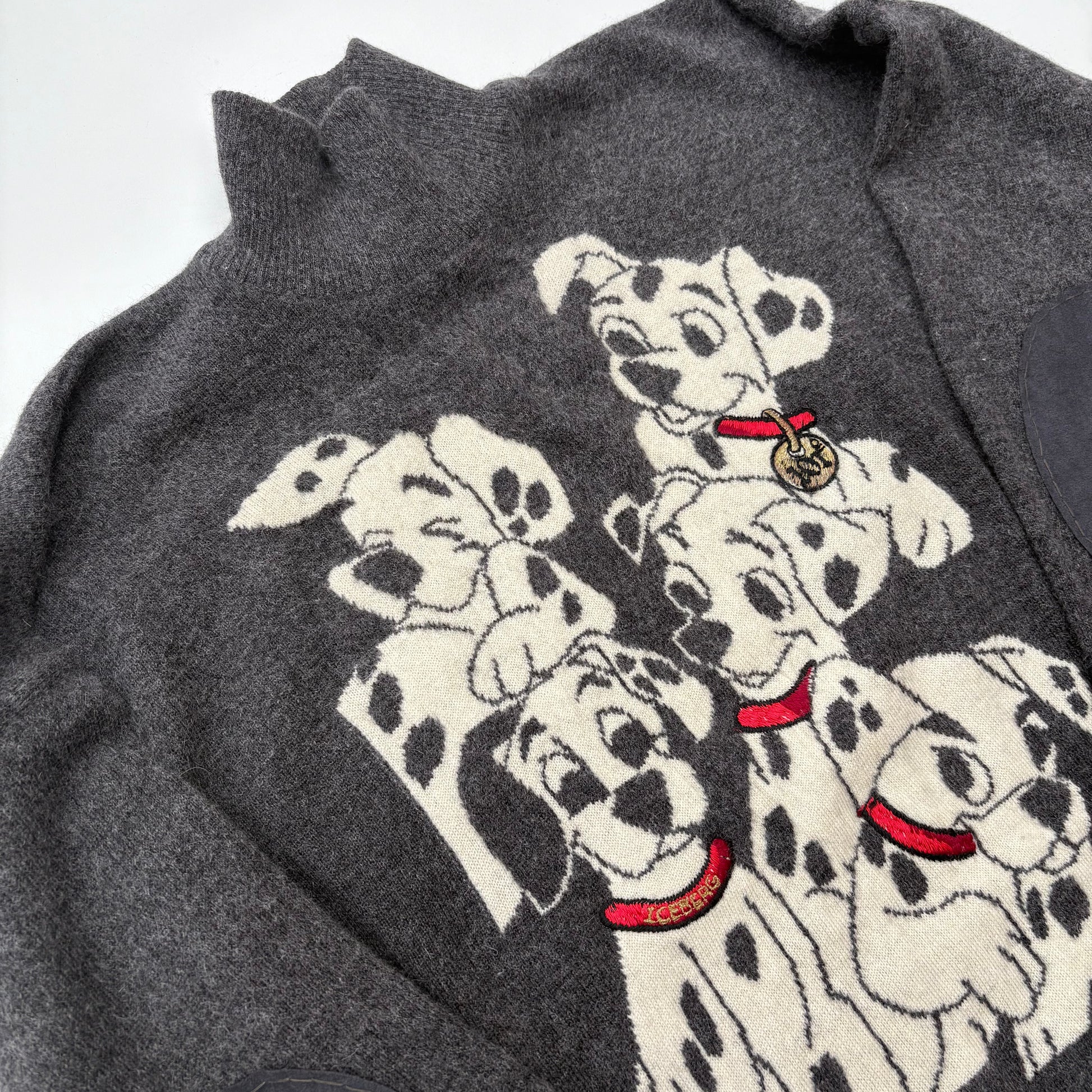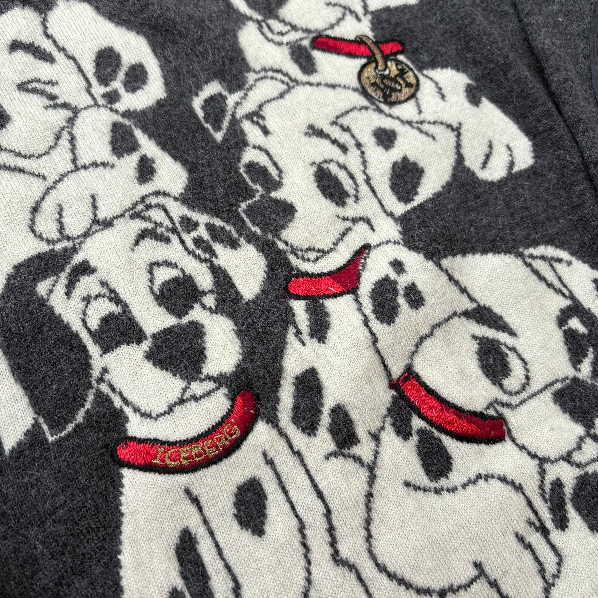 Stupendo pullover lungo, in angora, di Iceberg, vintage anni 90. Maglia sottile con disegno dedicato ai dalmata de “la carica dei 101”.