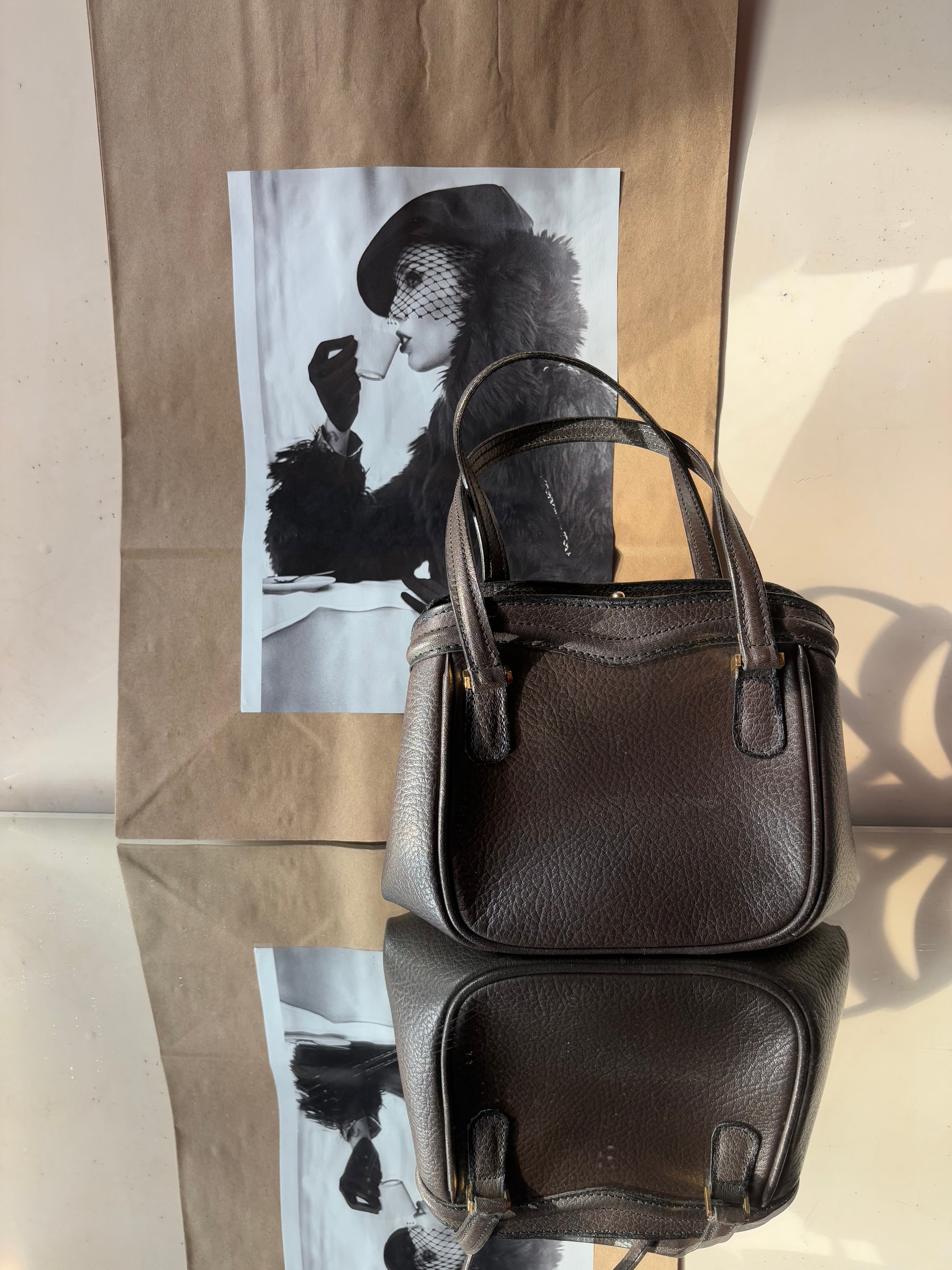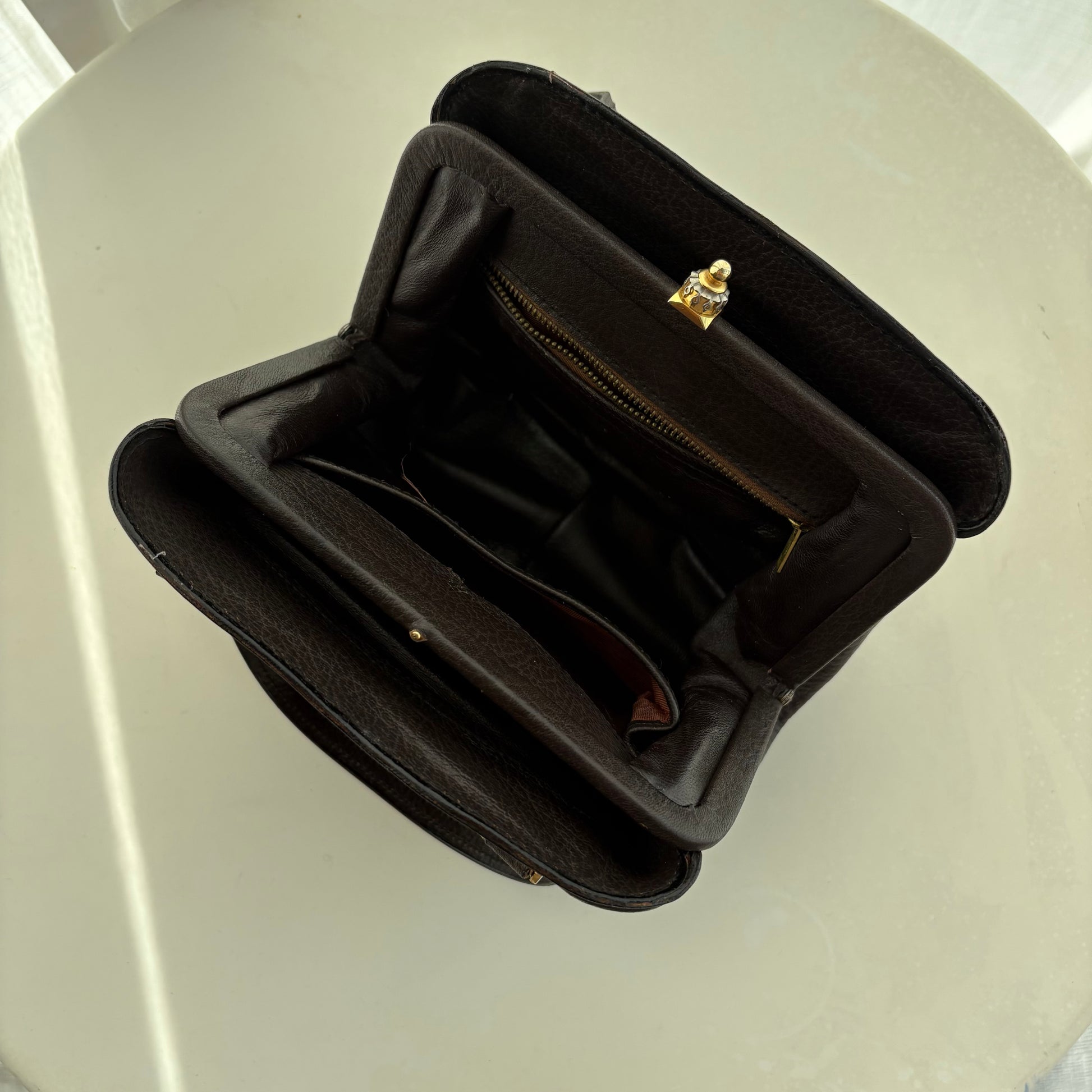 Mini bag vintage anni 70 in pelle marrone scurissimo, quasi nero.