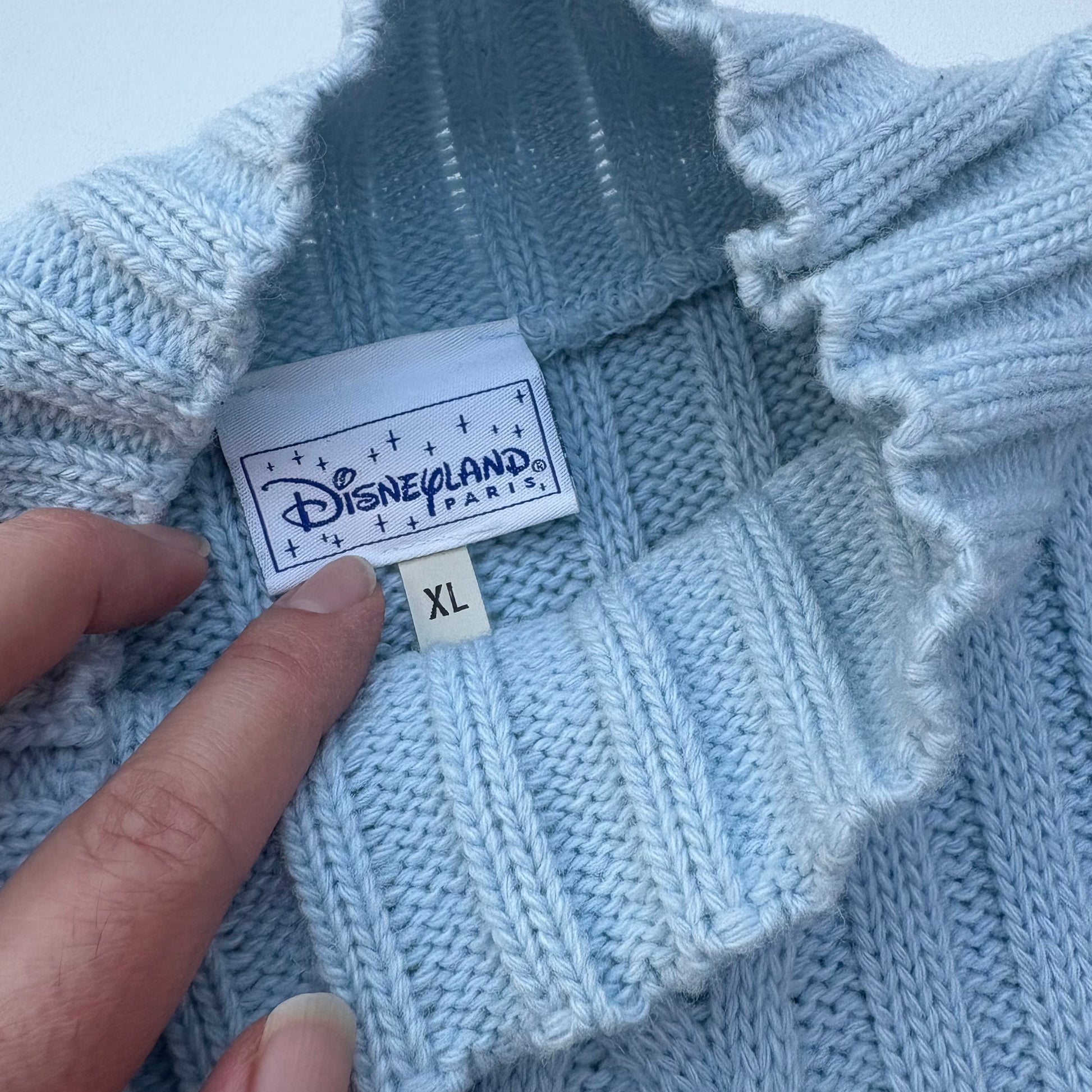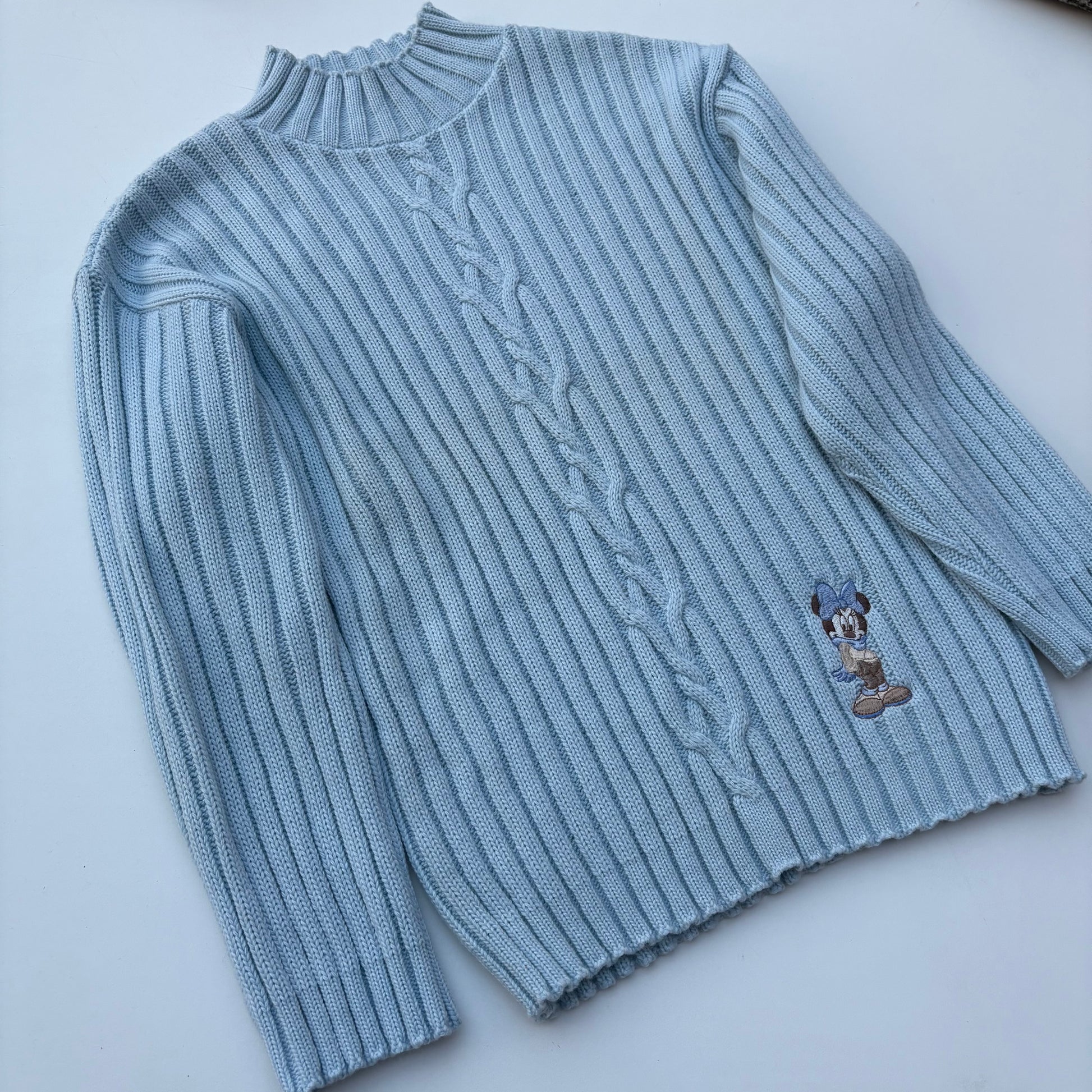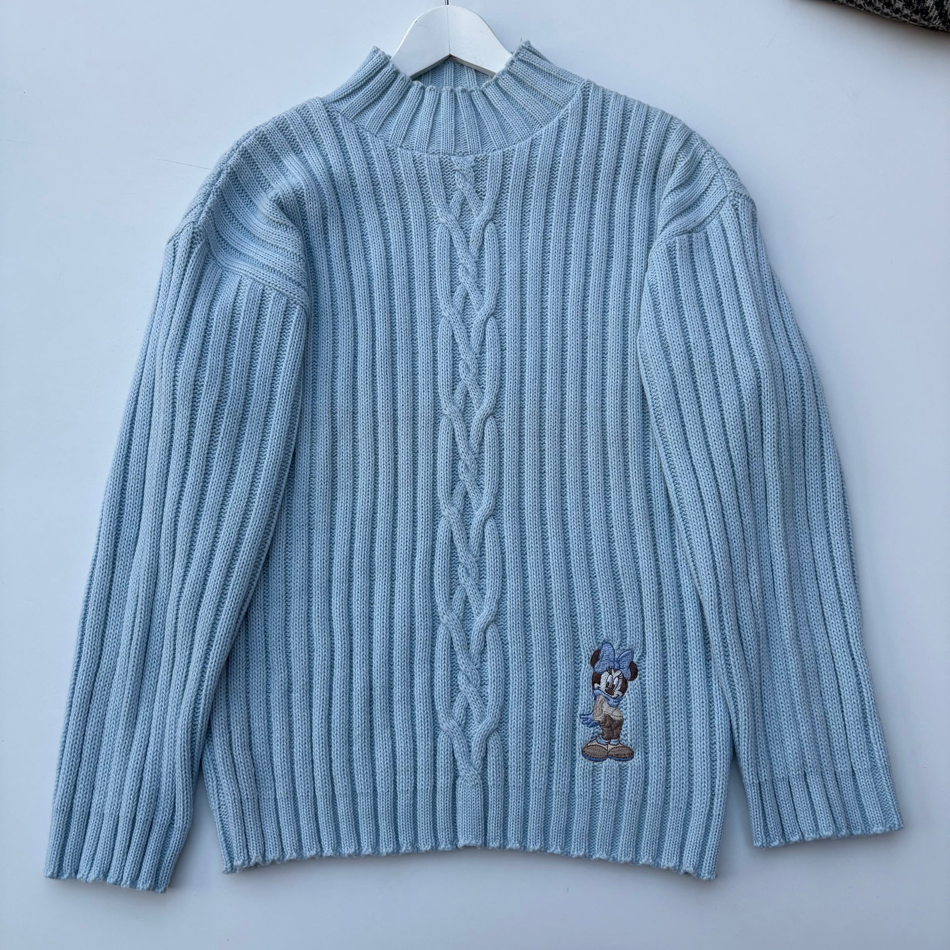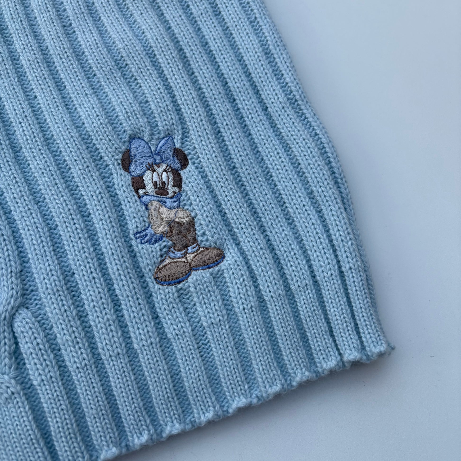 Da Disneyland Paris , pullover con collo leggermente alto, in una splendida tonalità di azzurro, lavorazione con treccia centrale, ricamo sul fondo dedicato a Minnie.