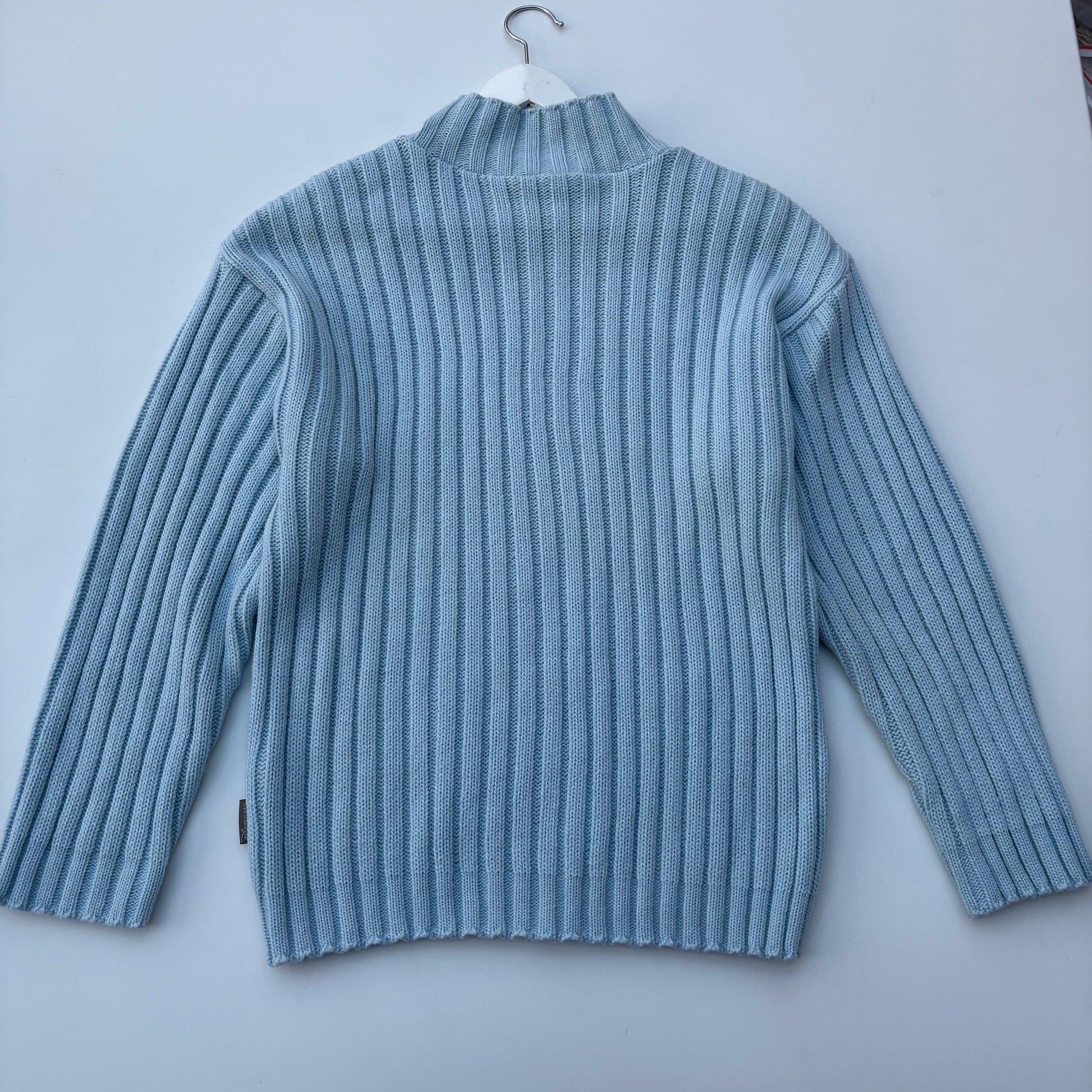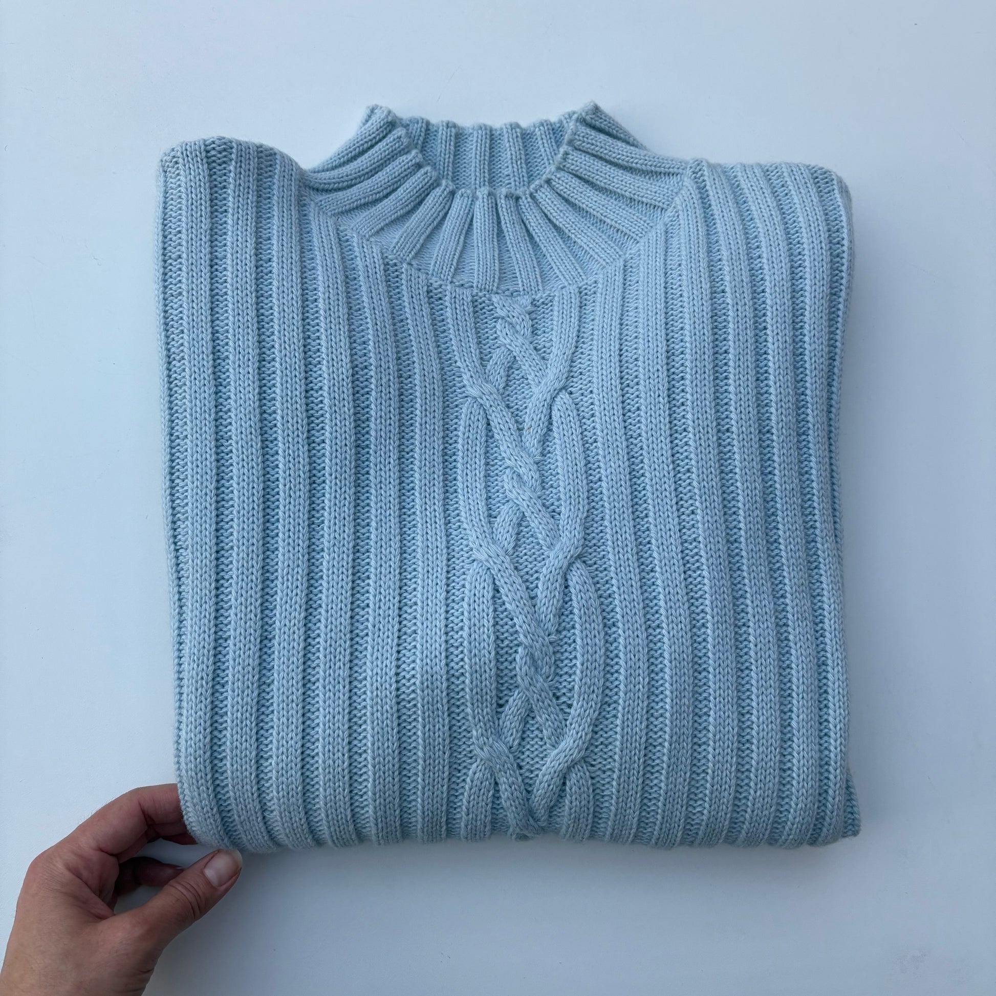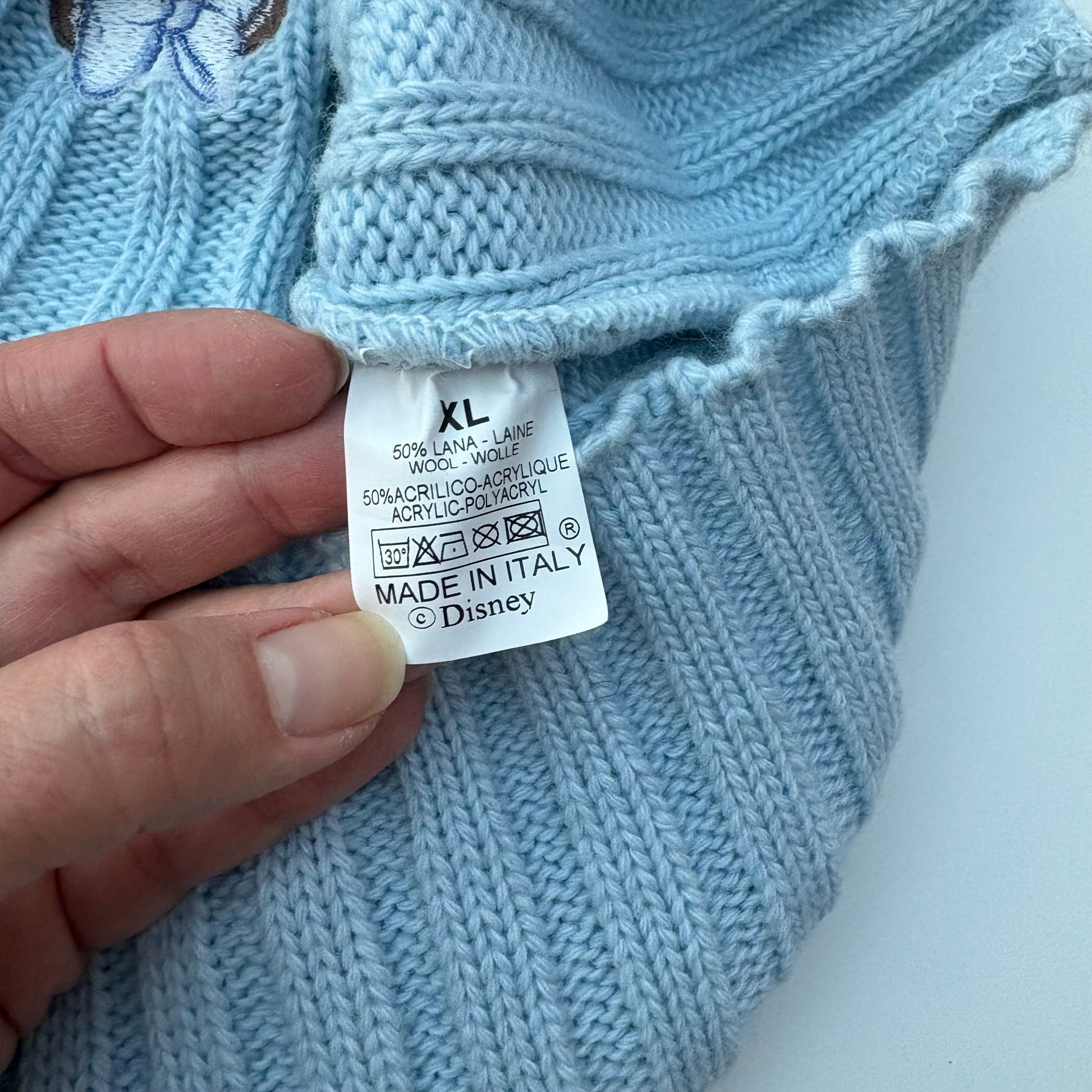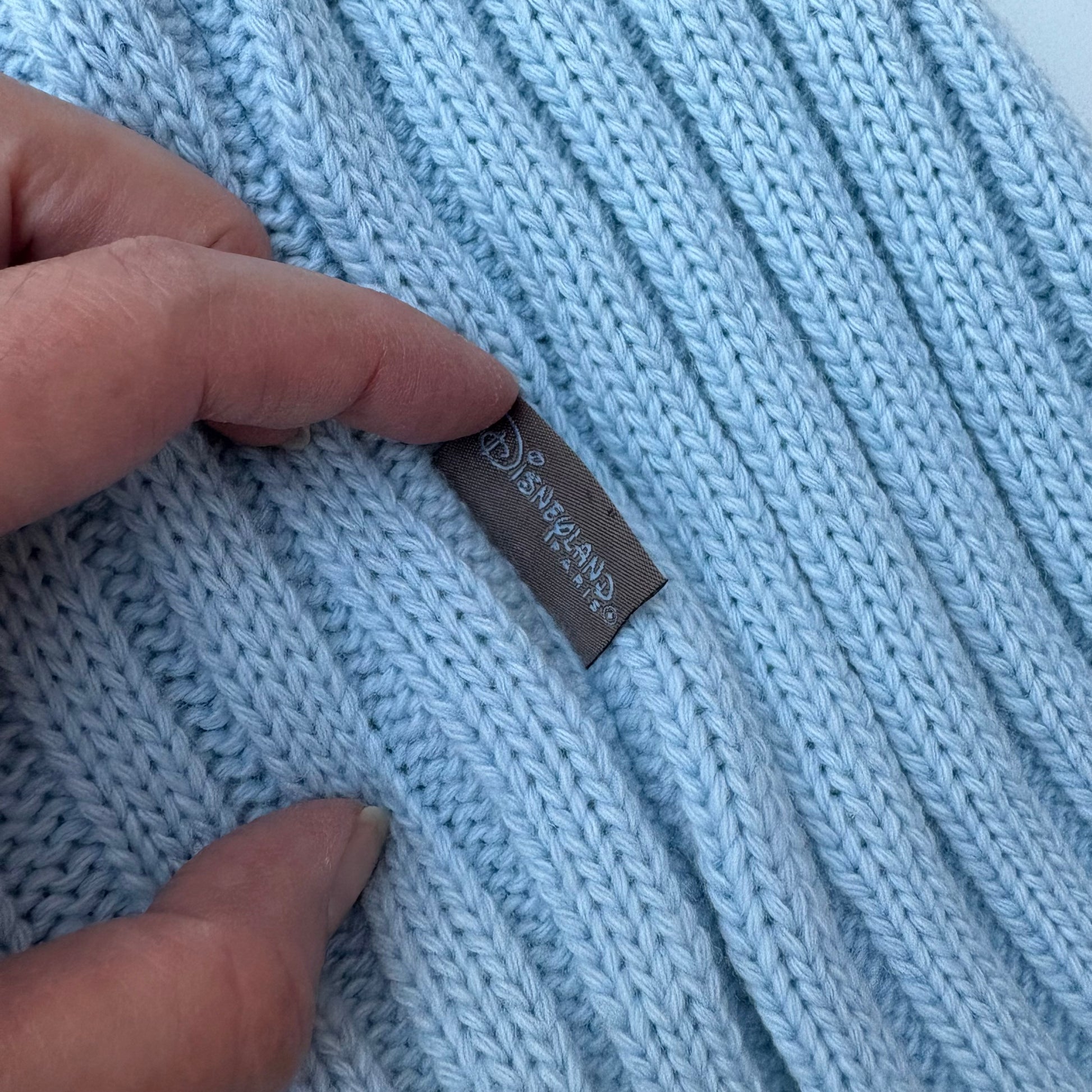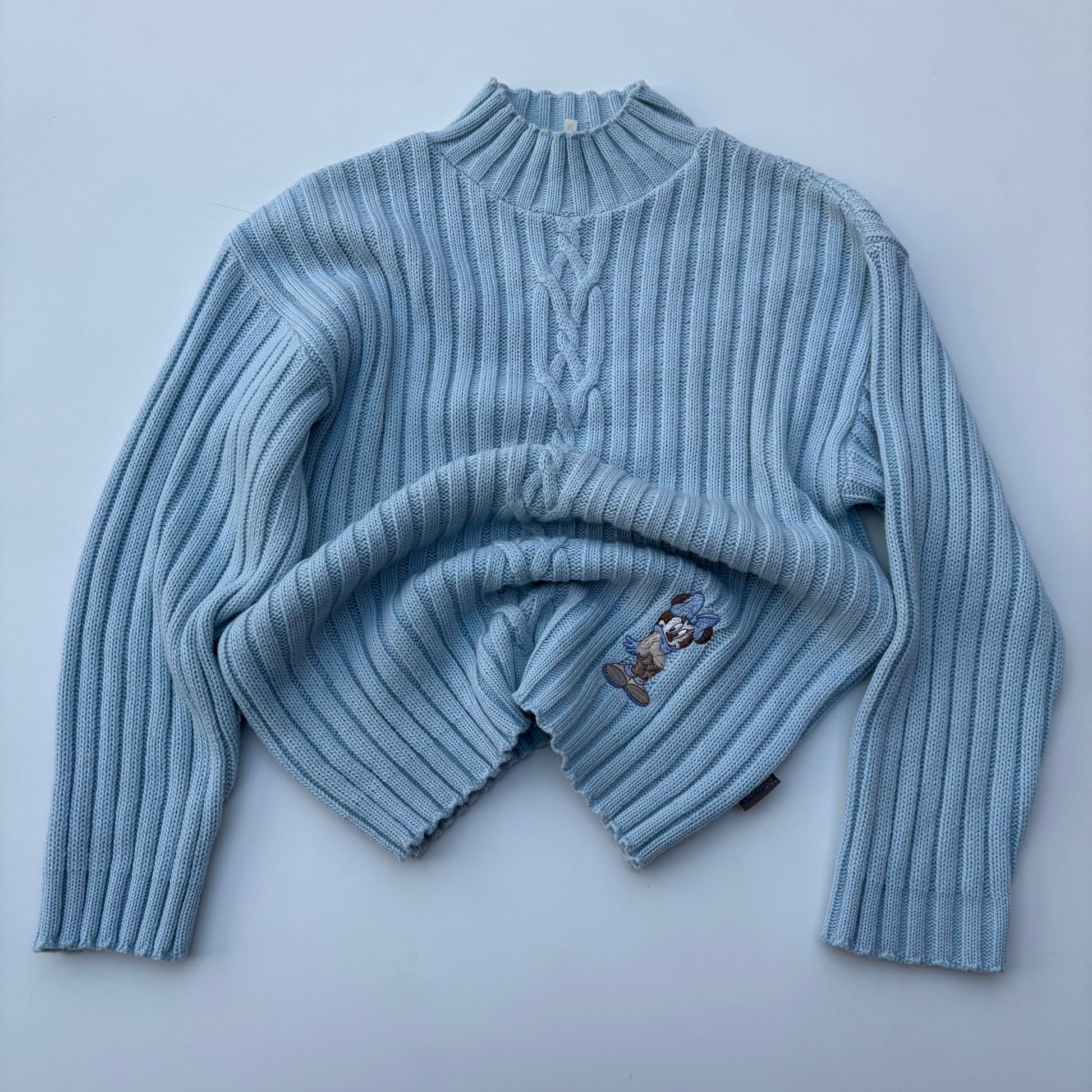 Da Disneyland Paris , pullover con collo leggermente alto, in una splendida tonalità di azzurro, lavorazione con treccia centrale, ricamo sul fondo dedicato a Minnie.