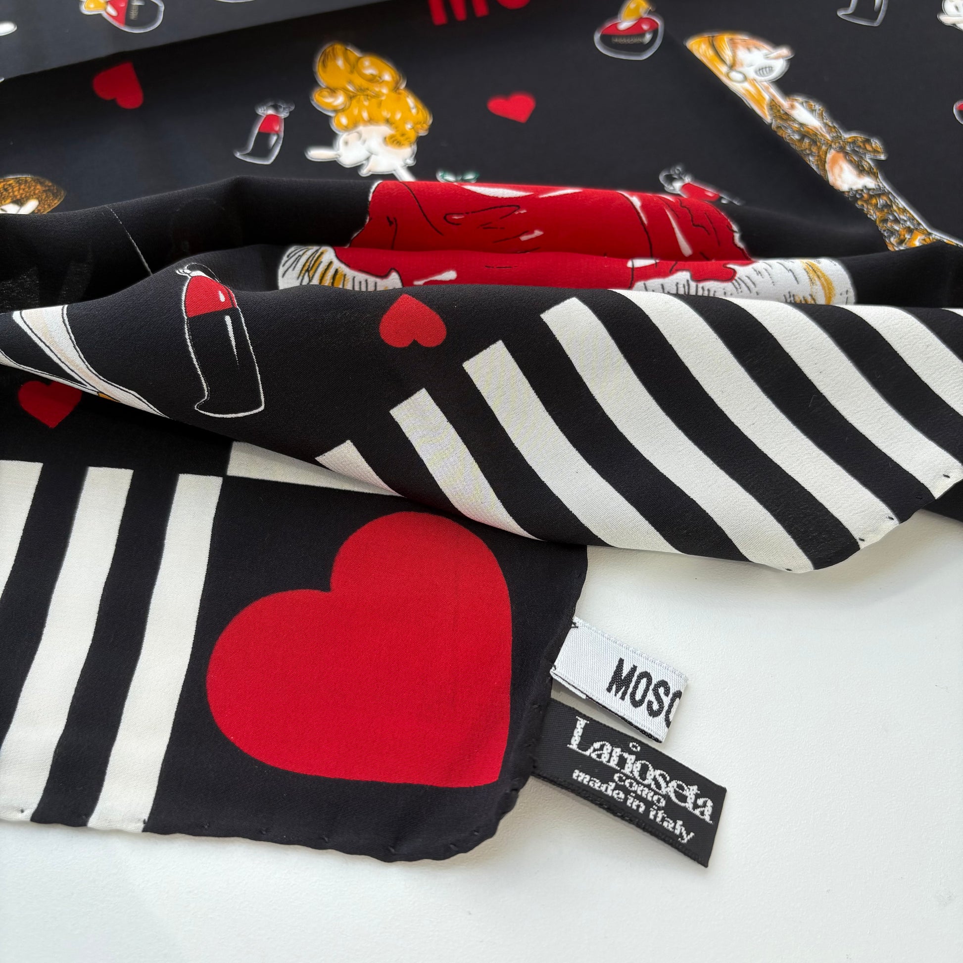 Moschino foulard vintage anni 90 in 100% seta Lario -Como con orlo fatto a mano.