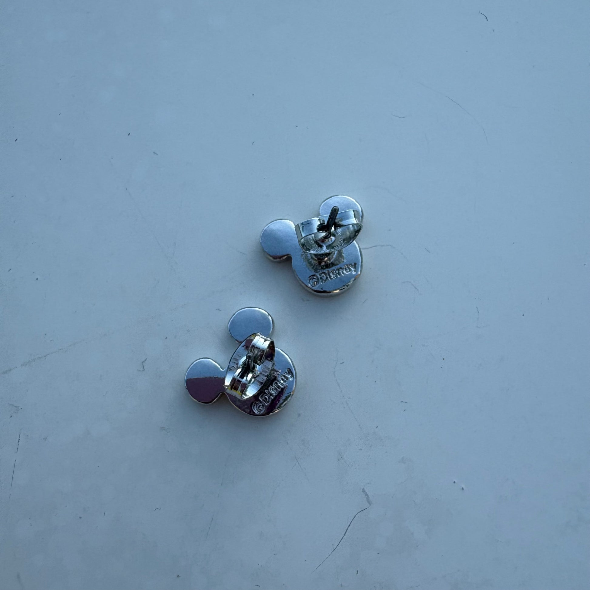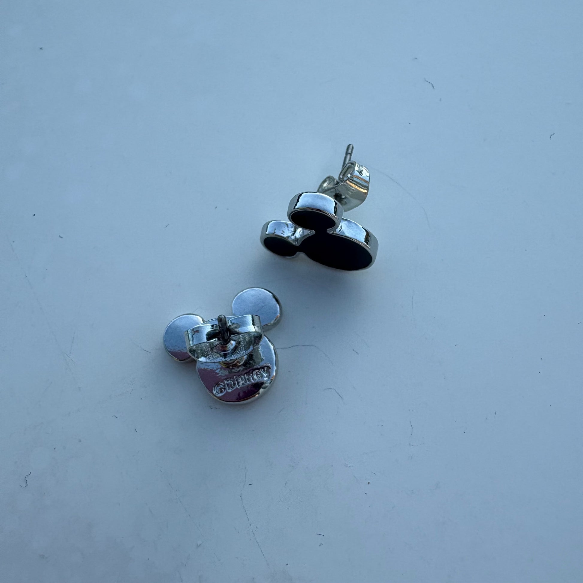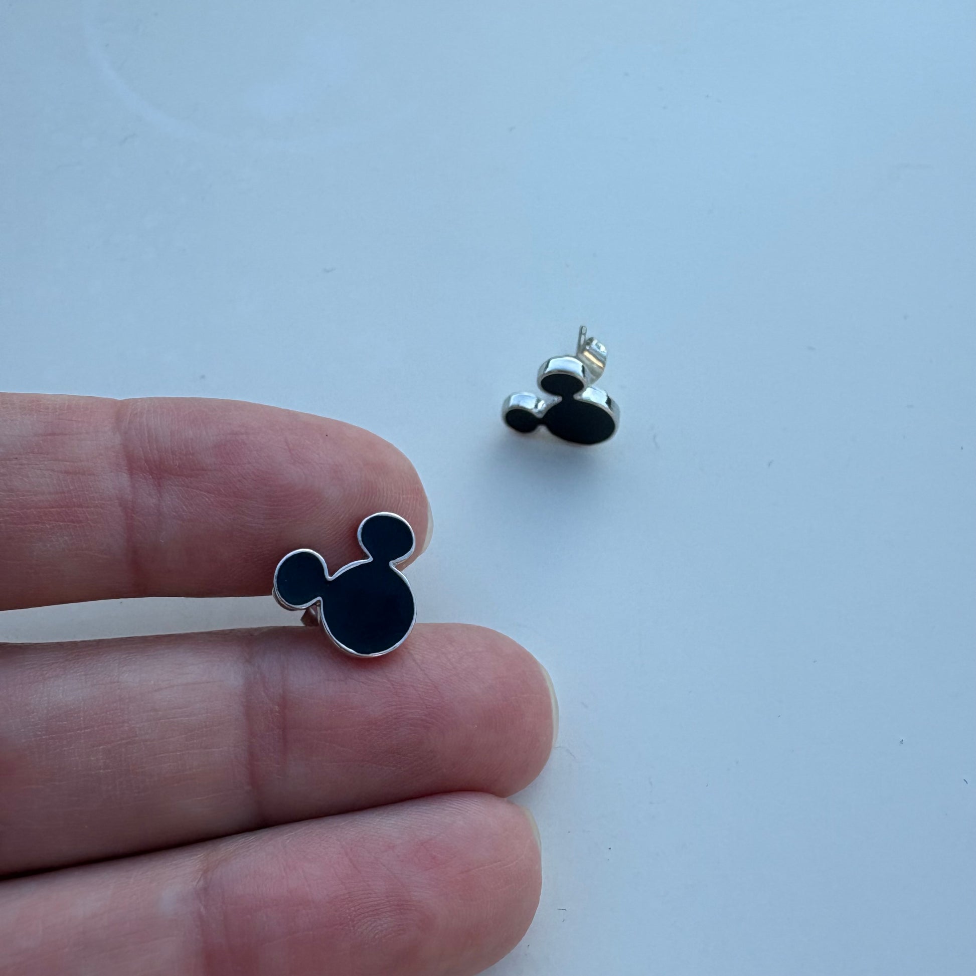 Orecchini a vite raffiguranti la sagoma di Topolino in metallo smaltato nero.