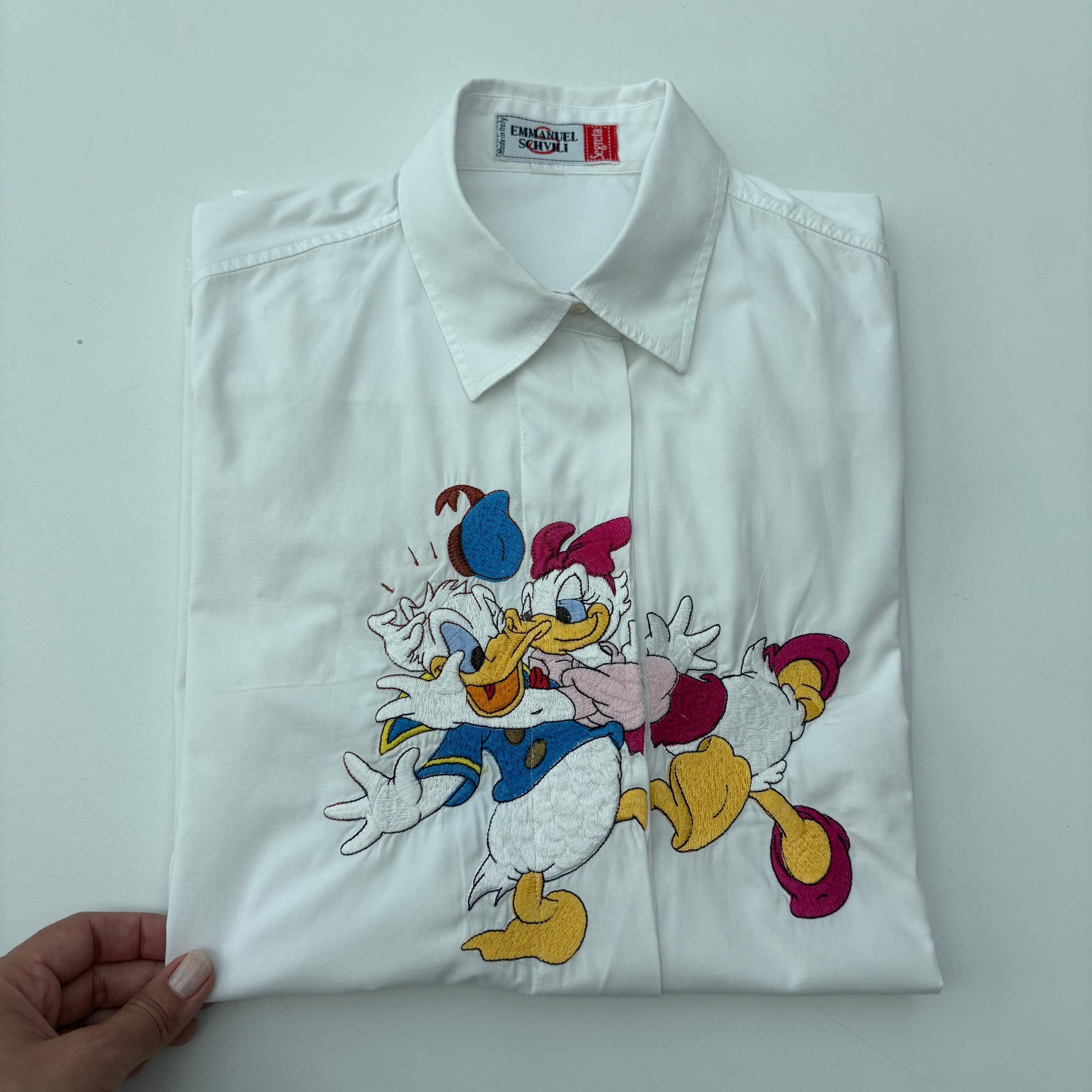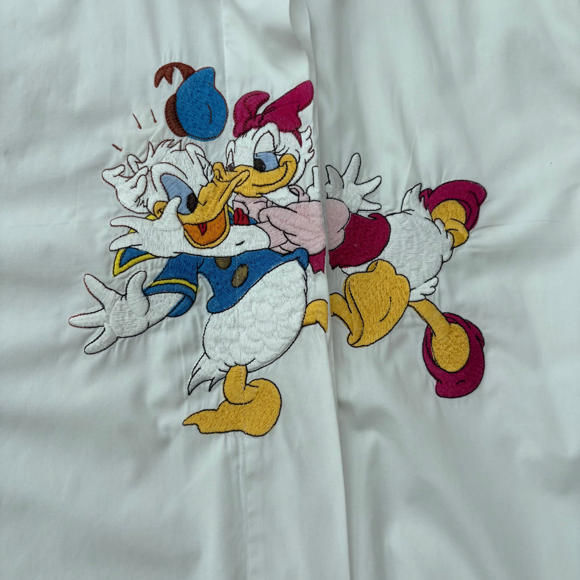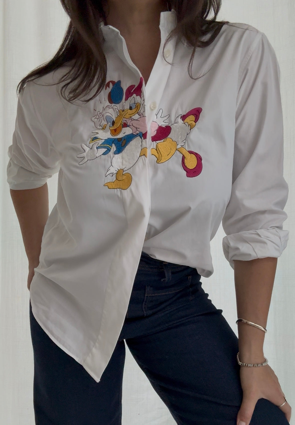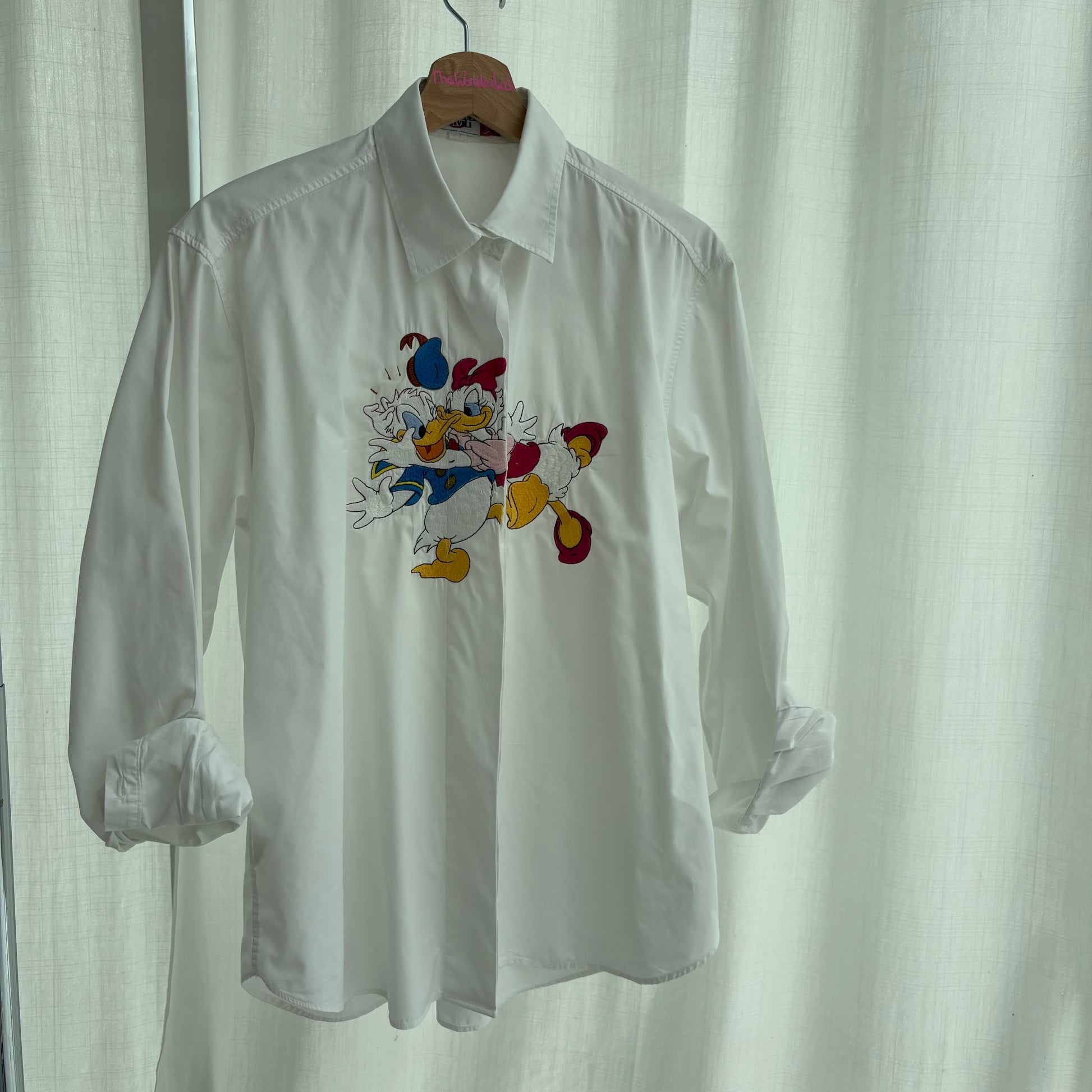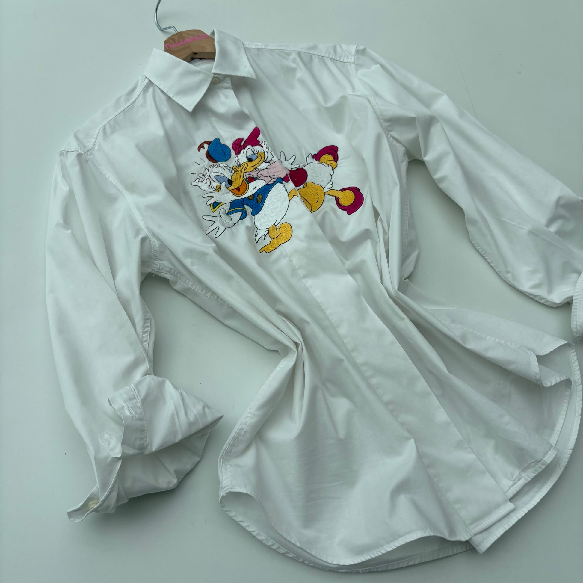 Schvili in popeline di cotone bianco con ricamo dedicato a Paperino o Paperina in love.