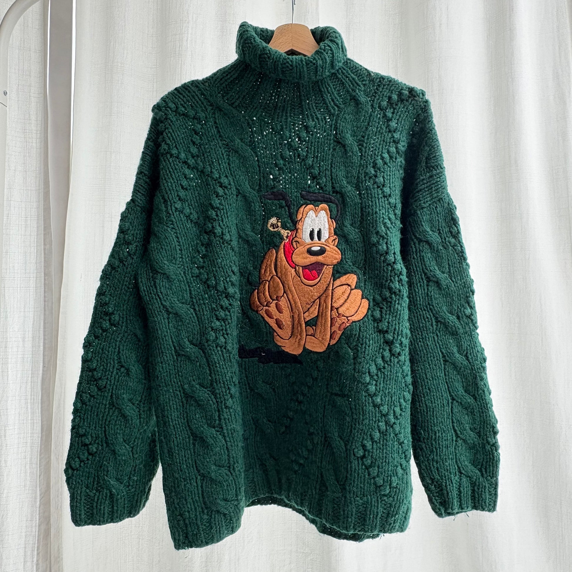 Pull vintage anni 90 con collo alto by Schvili con ricamo a tema Pluto.