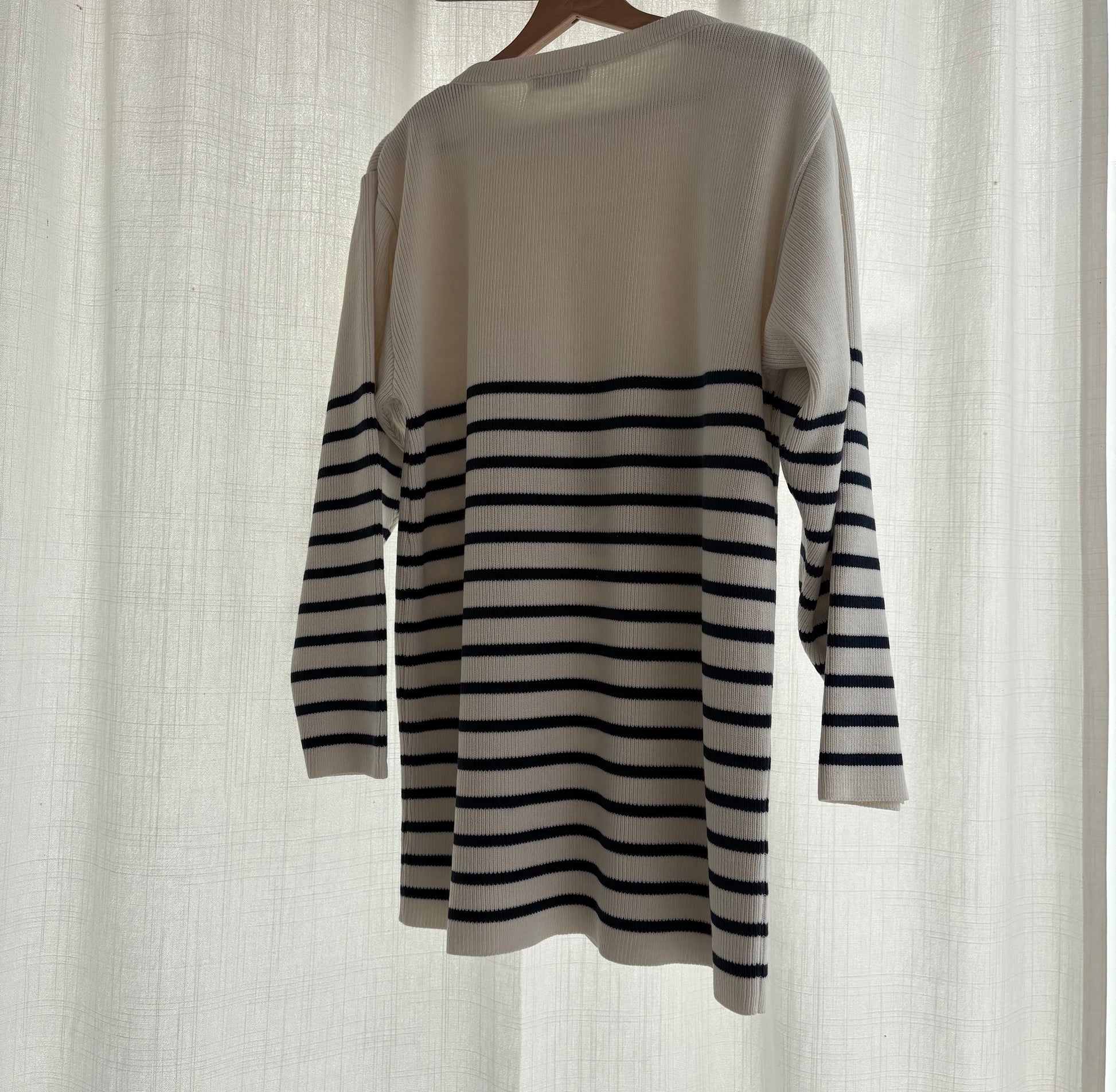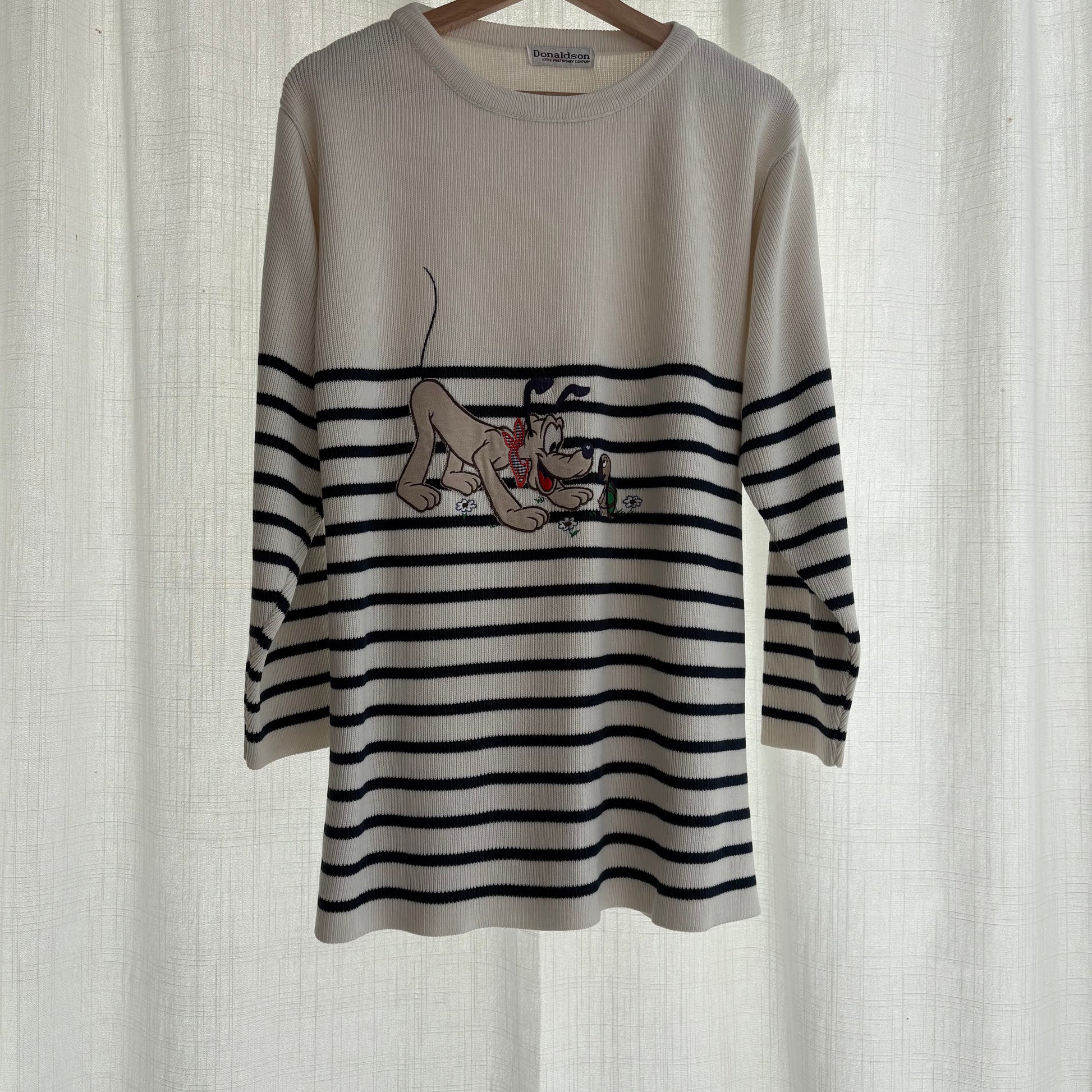 Stupendo pullover vintage “mariniere” a righe bianco e blu con ricamo centrale dedicato a Pluto.