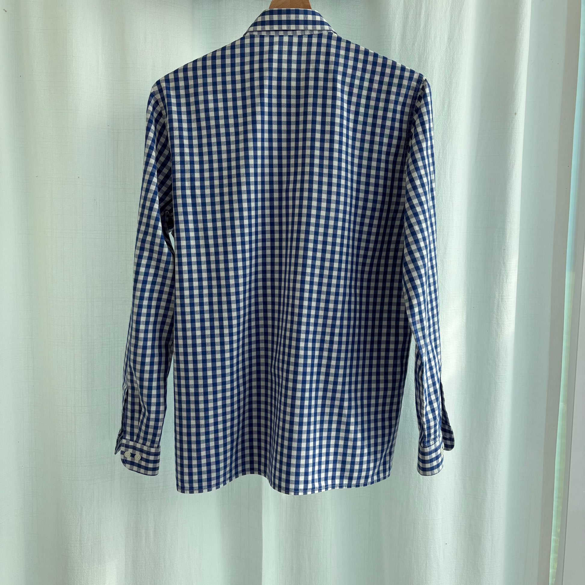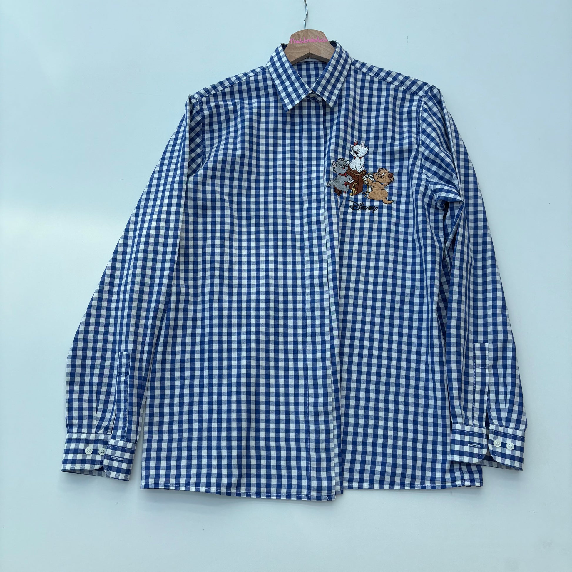 Camicia Schvili anni 80, in cotone, con fantasia a quadri grossi bianco e blu e ricamo dedicato agli aristogatti!