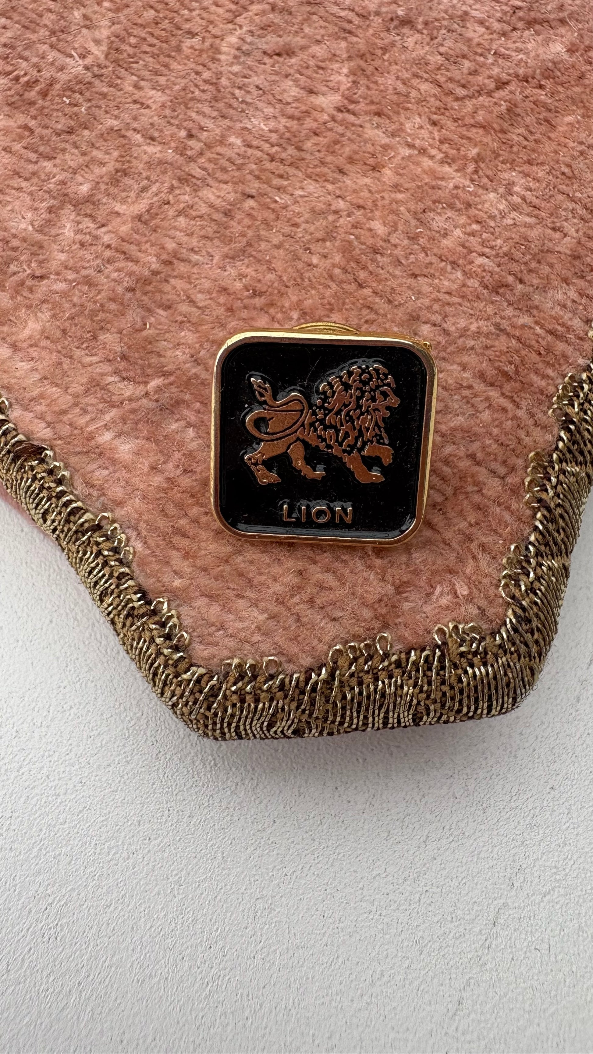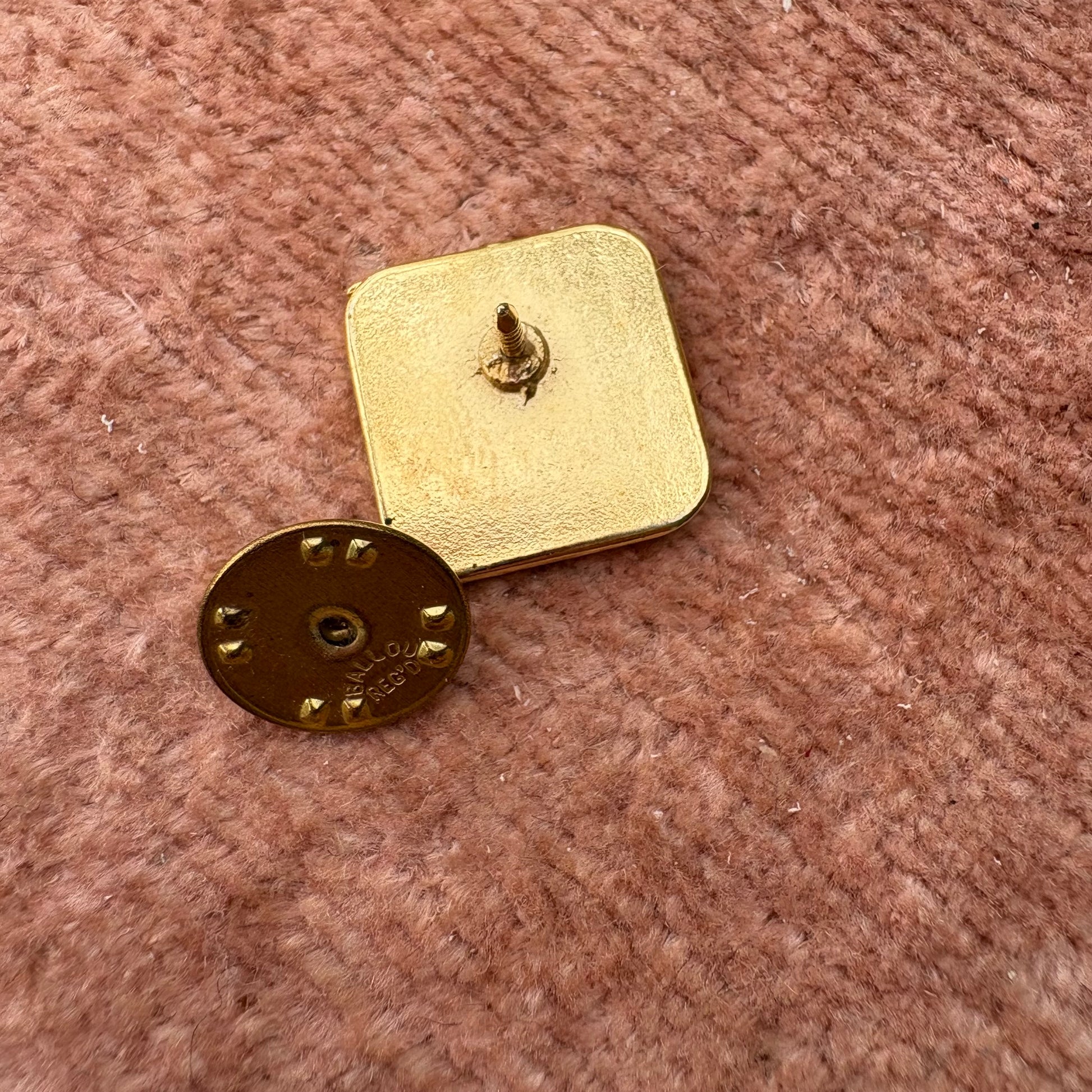 Spillette /pins in metallo goltone con segni zodiacali su piastra quadrata e smaltata di nero.