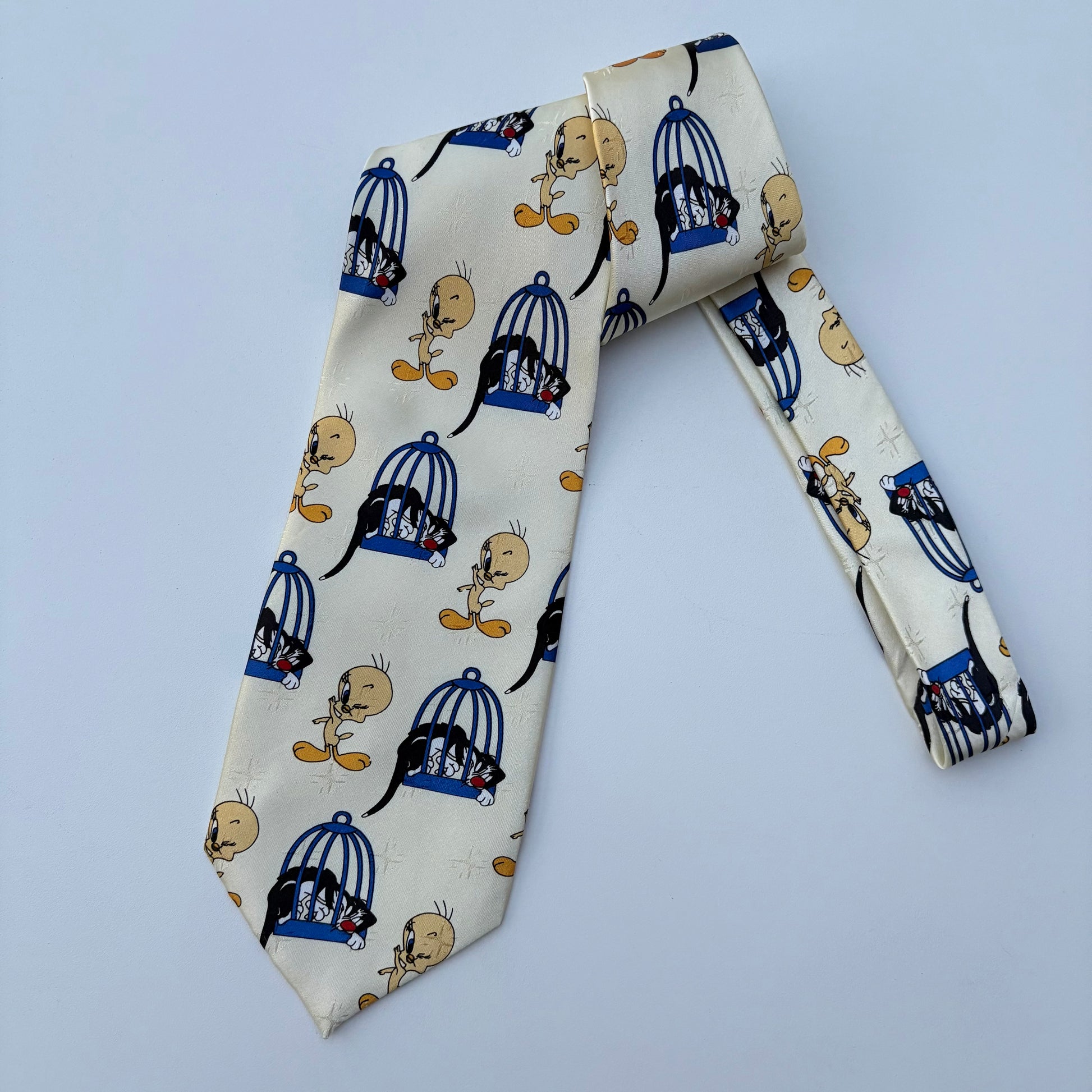Stupenda cravatta in 100% seta dedicata a Titti e Silvestro. Made in USA.