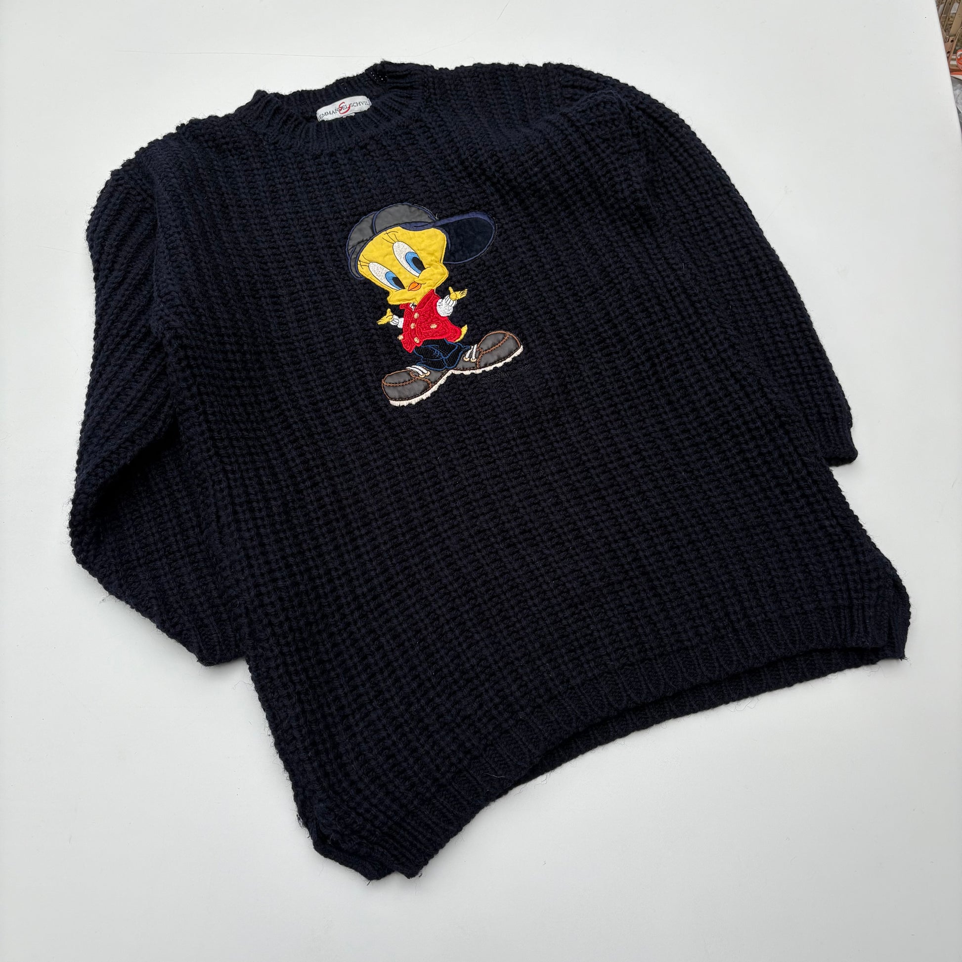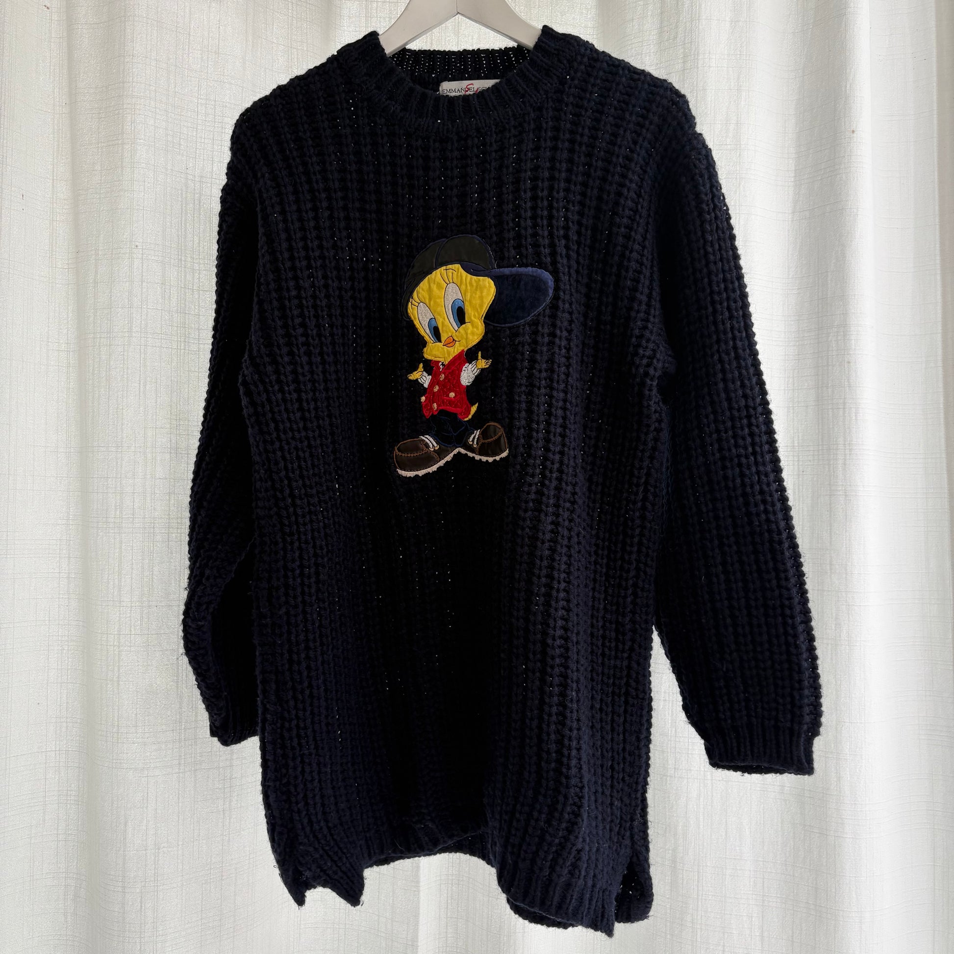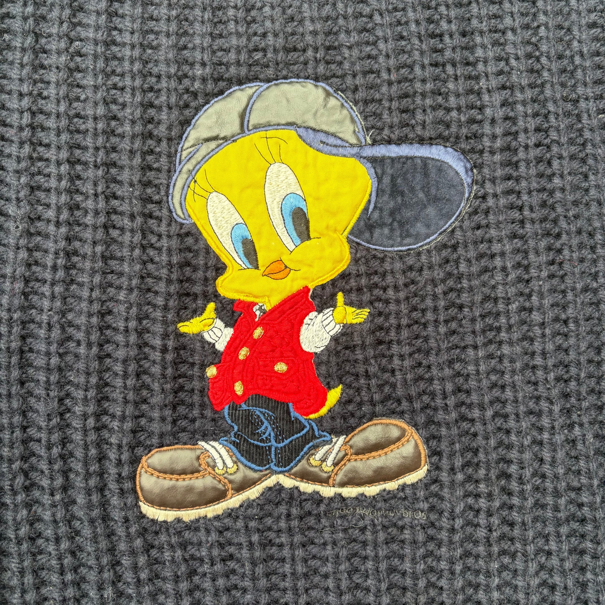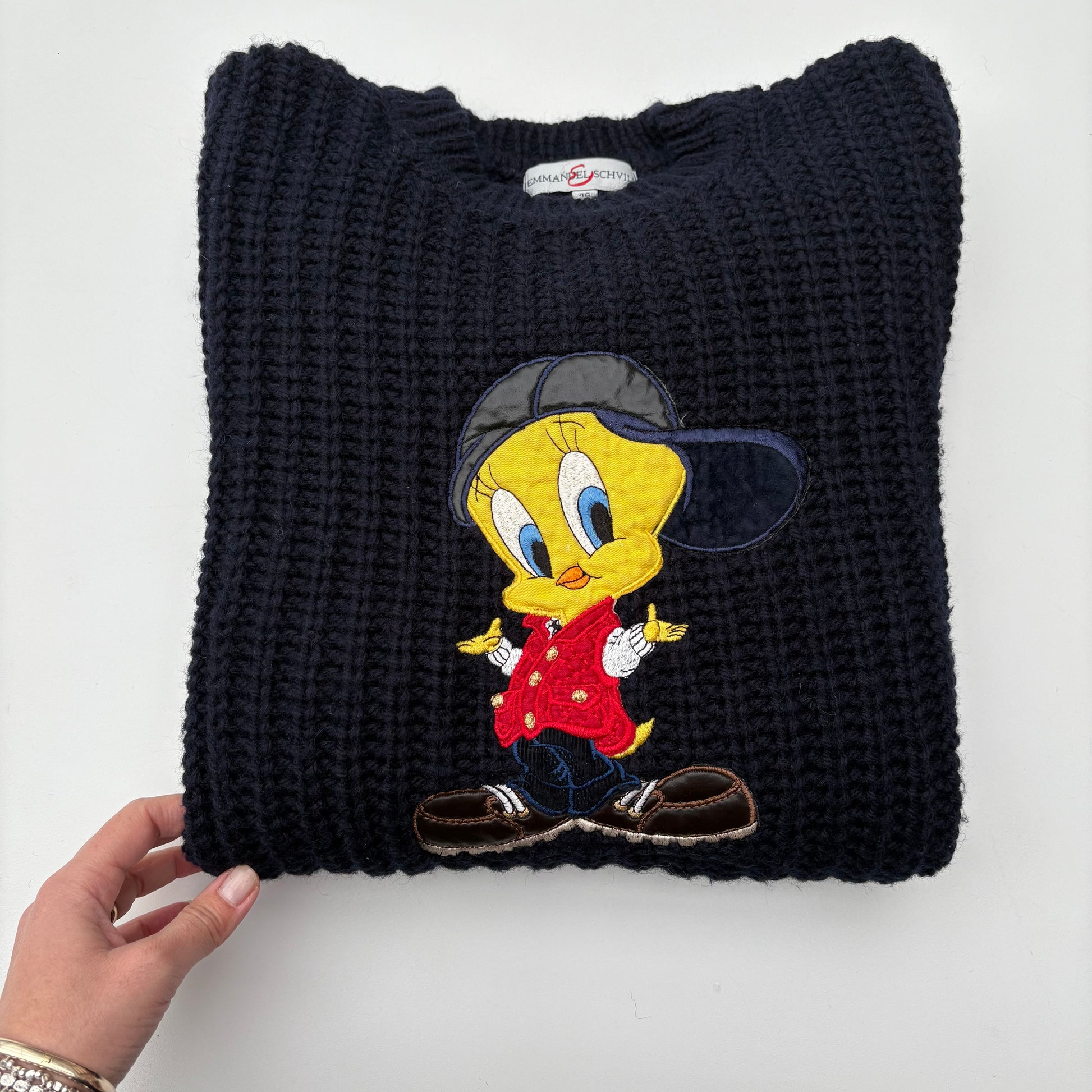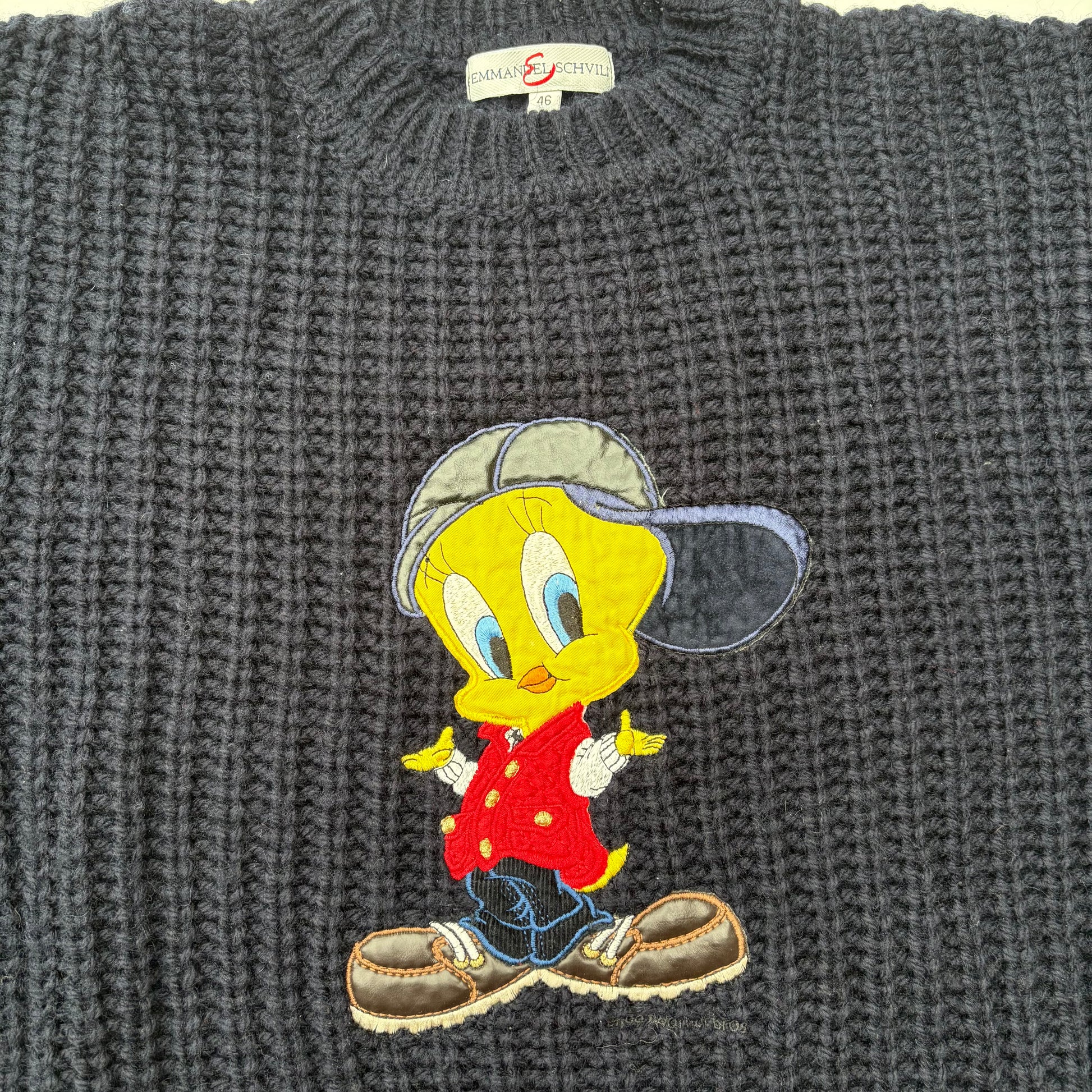 Pull vintage anni 90 con collo alto by Schvili con ricamo a tema Titti.