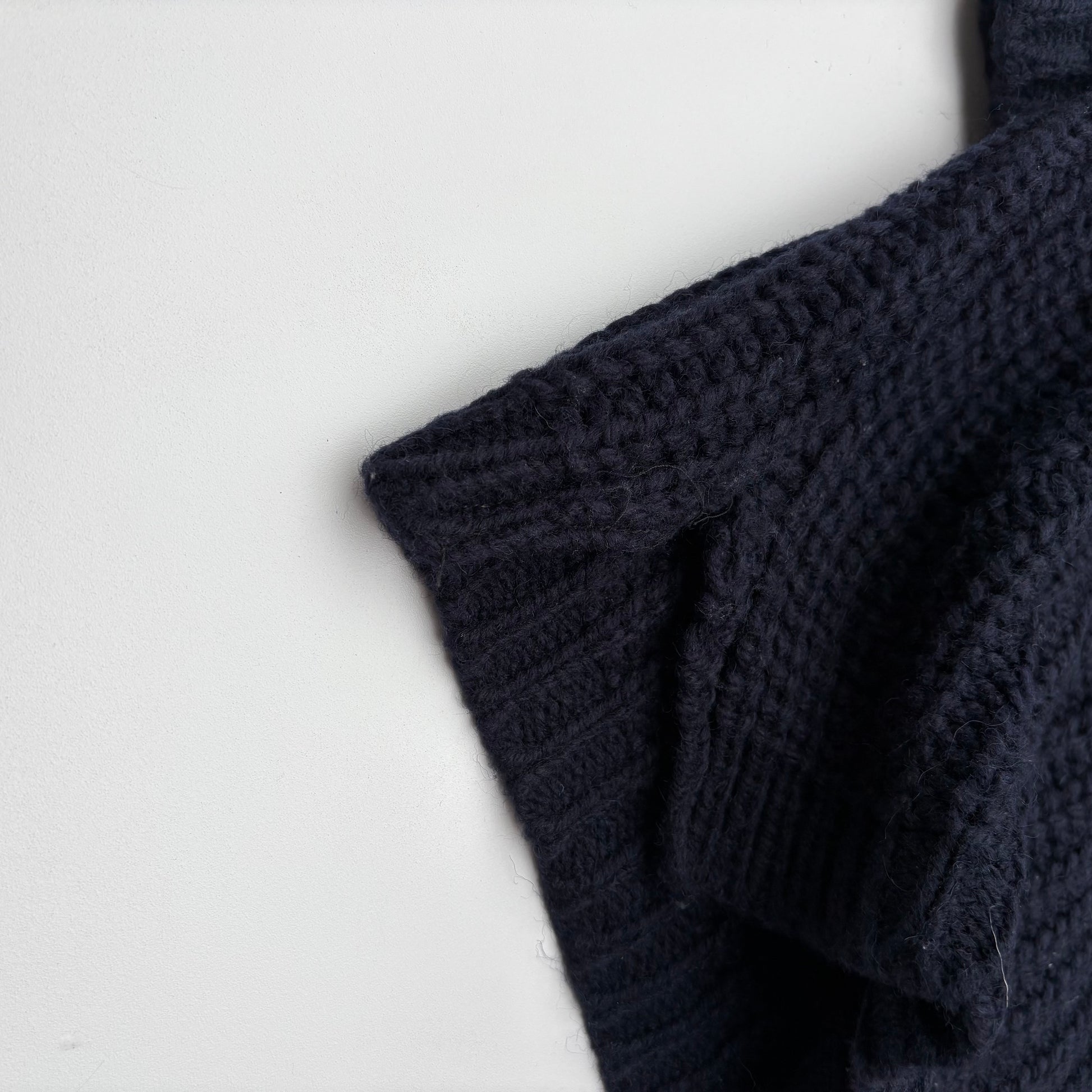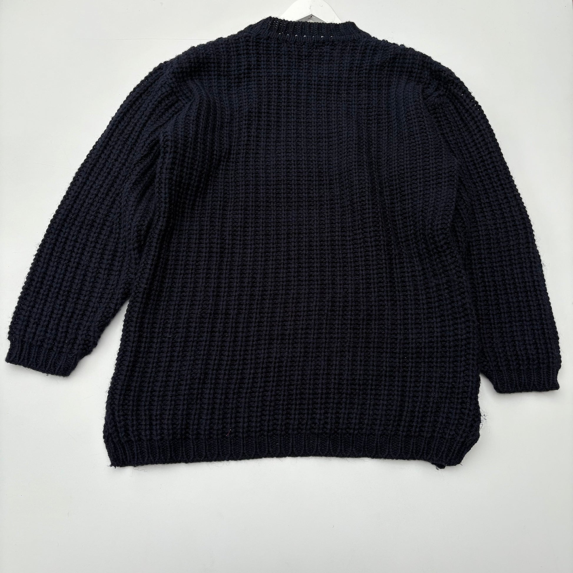 Taglio over e squadrato, la maglia è lavorata grossa.