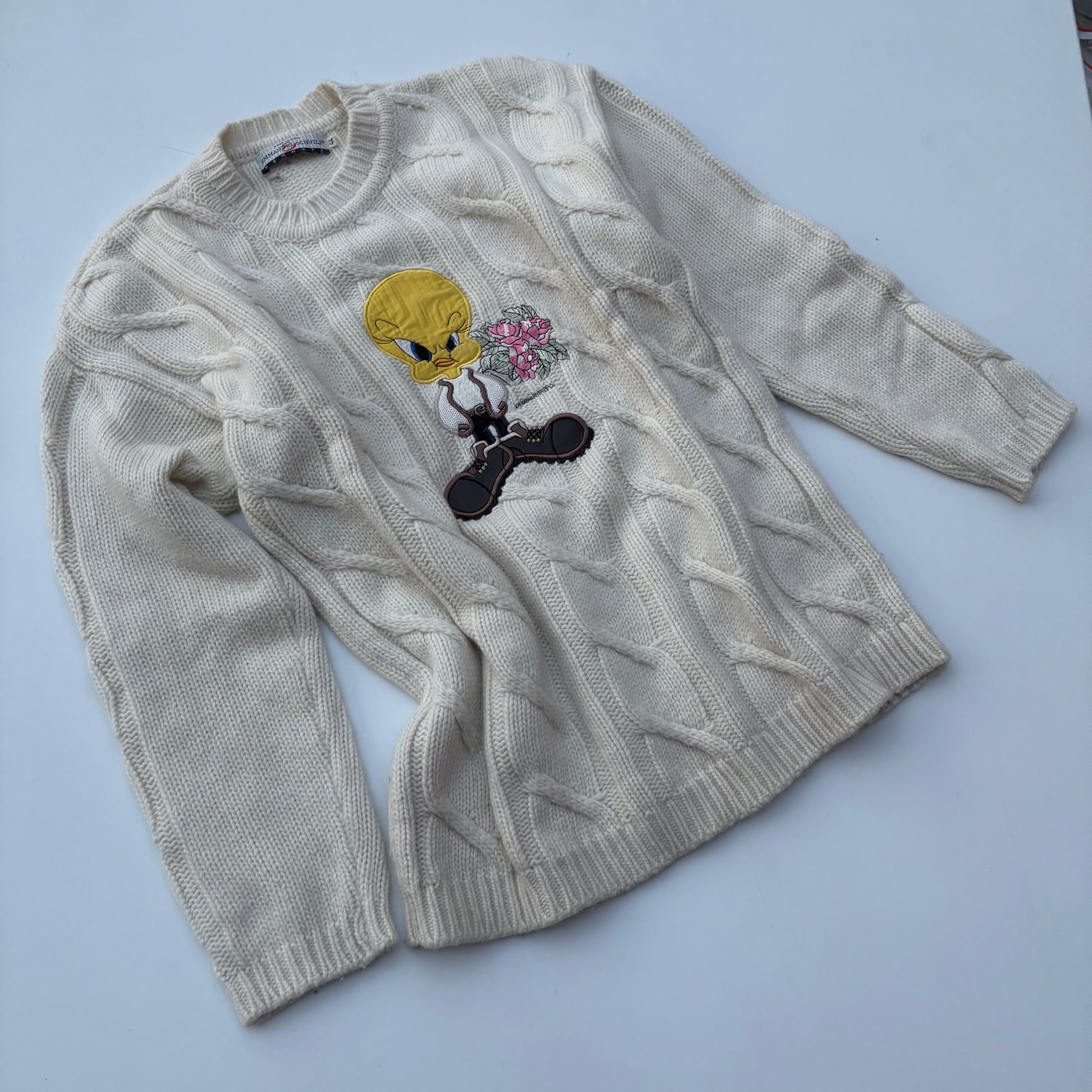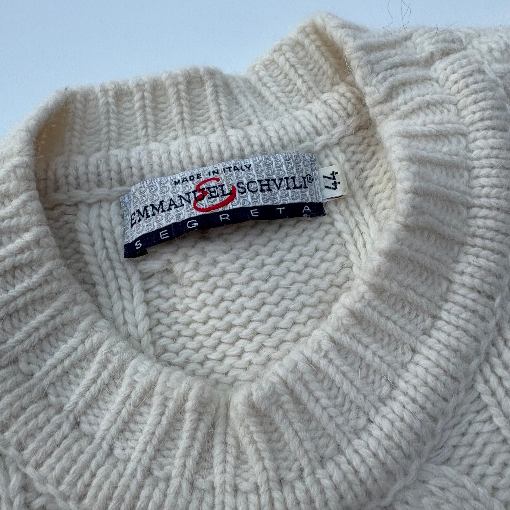 Di Schvili, stupendo pullover girocollo color panna con lavorazione a trecce.