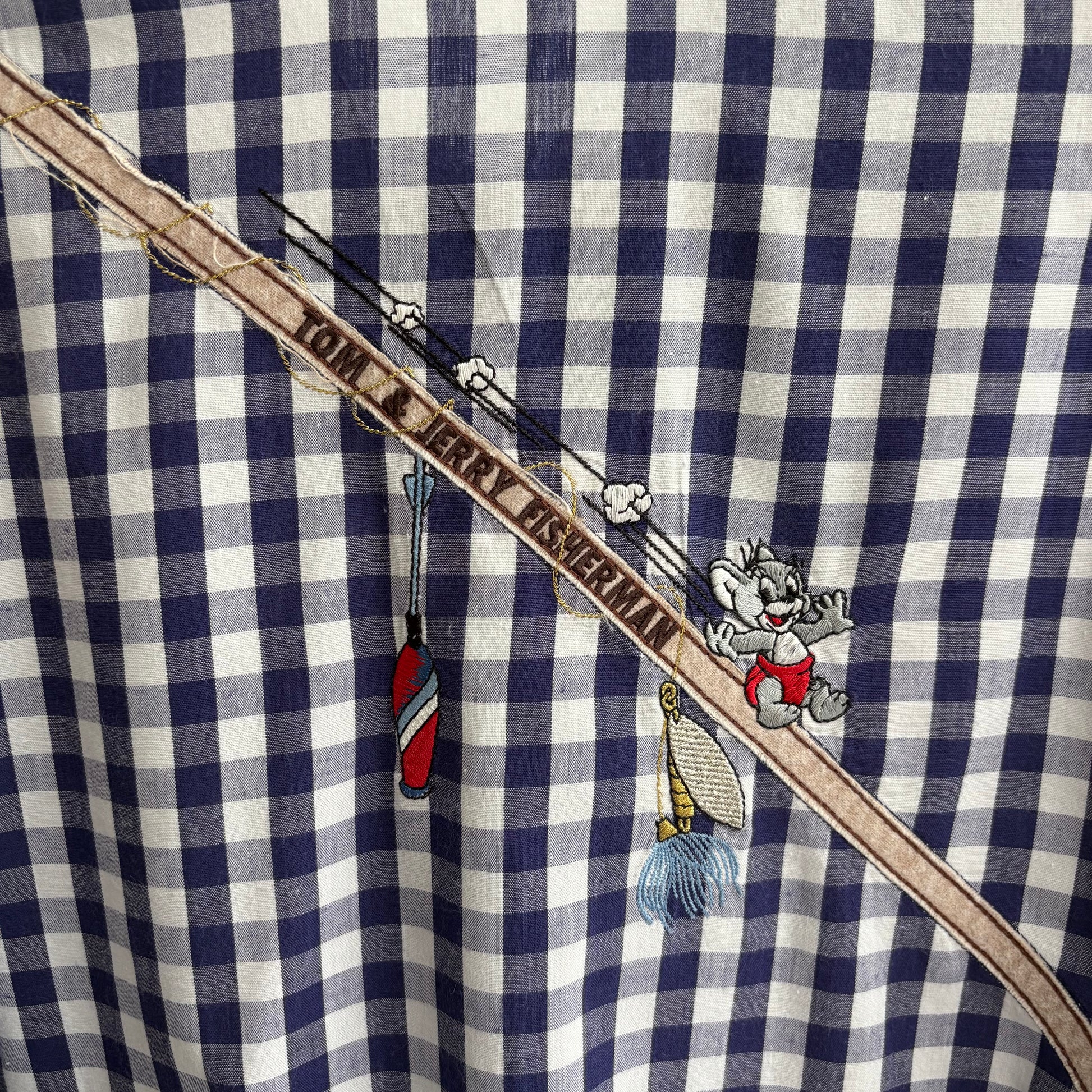 Di Schvili, camicia anni 90 in cotone con ricamo dedicato a Tom & Jerry in versione Pescatori.